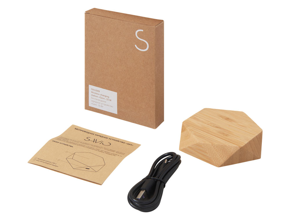 Вдохновляйтесь природой и современными технологиями — представляем беспроводное зарядное устройство мощностью 15 Вт в эксклюзивной геометрической форме из натурального бамбука. Каждая деталь этого устройства — от рельефных граней до теплого текстурированного покрытия — подчеркивает его уникальность и гармонию с природой. Заряжайте смартфон без проводов, наслаждаясь сочетанием функциональности и дизайна, который станет настоящим украшением любого интерьера — будь то домашний стол, рабочее место или лобби офиса. С поддержкой быстрой зарядки до 15 Вт и высокоточной индукционной технологией, это устройство обеспечивает эффективную и безопасную подзарядку.