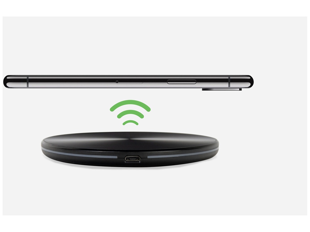 Беспроводное зарядное устройство Rombica NEO Zeta Quick. • Совместимо с устройствами, изготовленными по стандарту Qi. • Мягкая подсветка. • Быстрая зарядка. Поддерживает быструю зарядку в режимах 7.5W и 10W. При включенном в сеть БЗУ по контуру горит зеленая подсветка в ритме Дыхание, в режиме заряда мобильного телефона подсветка светится статично зеленым цветом. *для зарядки в быстром режиме 7.5W или 10W необходимо использовать сетевое USB ЗУ (в комплект не входит), поддерживающее технологию Quick Charge 2.0/3.0. Быстрая зарядка: 7.5W и 10W Вход: micro-USB 5В/2A; 9В/1.67А Выход(ы): 5В/1А; 5В/1.5А (7.5W); 9В/1.1А (10W)