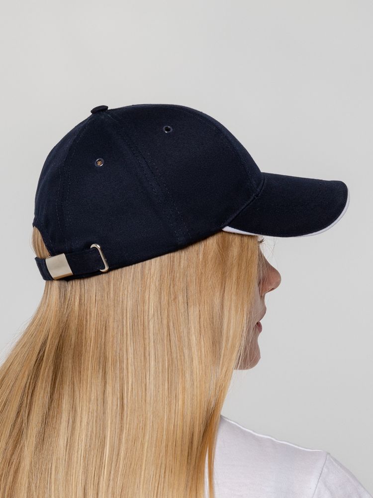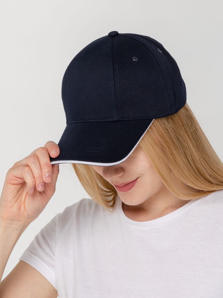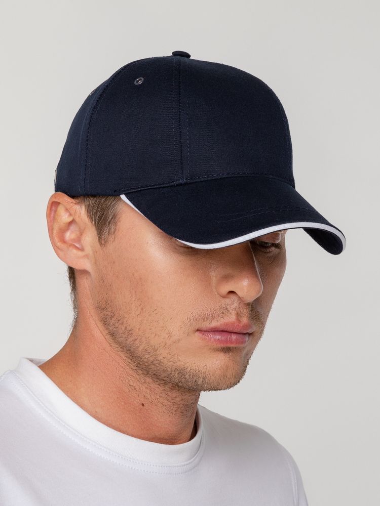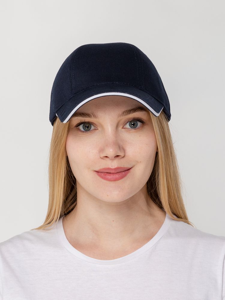 Бейсболка Canopy, темно-синяя с белым кантом можно заказать в нашей компании по самой доступной цене от 596 рублей.