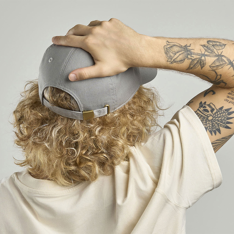 Мягкая неструктурированная бейсболка DAD HAT-S, изготовленная из смеси органического и переработанного хлопка. Форма модели родом из 1990-х годов - в Америке подобные бейсболки носили практически все папы тех лет, благодаря чему она и получила свое название. - 6 клиньев, - мягкий лоб со швом, - 6 вышитых люверсов для лучшей вентиляции, - изогнутый козырек с полной прострочкой, - металлическая застежка. Цвет, близкий к Pantone Warm grey 1C58,5 см - средний размер, с помощью застёжки его можно увеличить или уменьшить до необходимого.