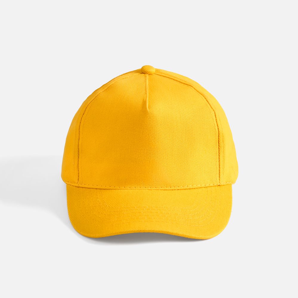 Модель бейсболки с 5-ю клиньями без лобового шва из плотного чесаного хлопка.