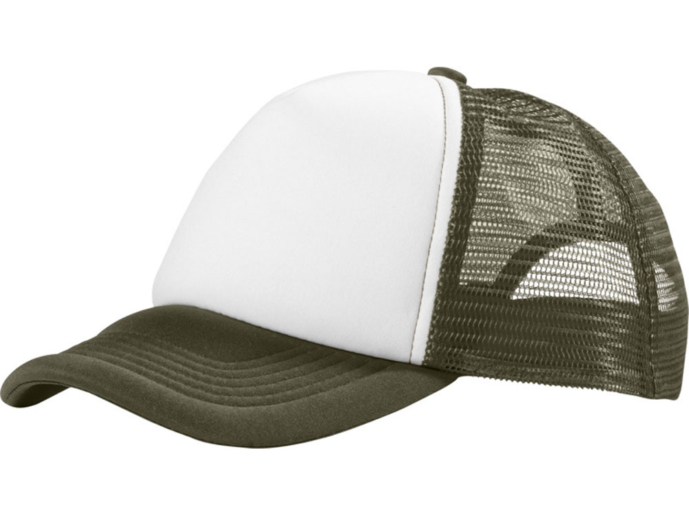 Кепка из 5 панелей Тракер. Оригинальная кепка на окружность головы 58 см с передней поролоновой частью, пластиковой сеткой сзади и пластиковой застежкой. Эта кепка полностью соответствует требованиям к соединениям AZO, формальдегиду и ПХФ. Полиэстер и поролон.