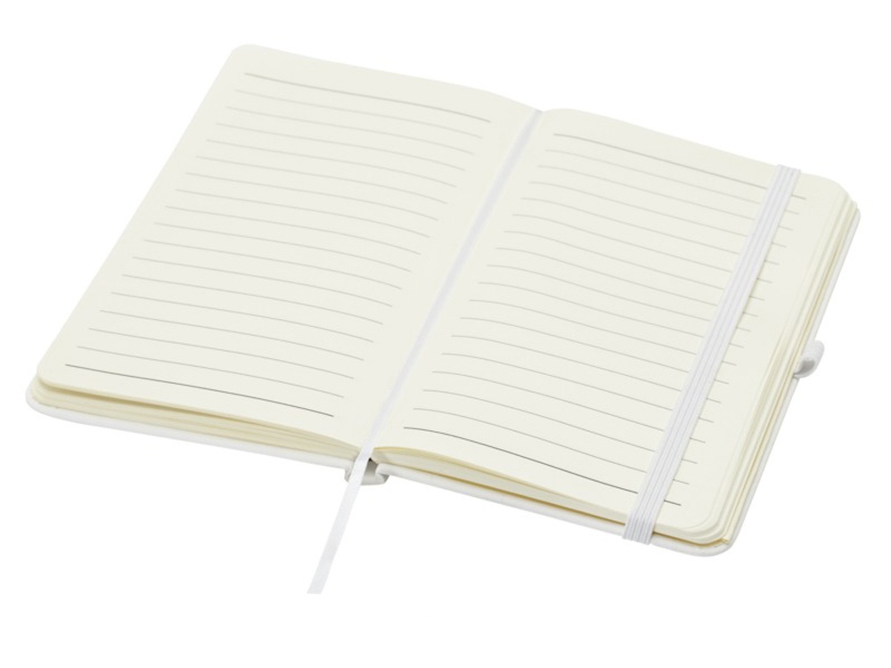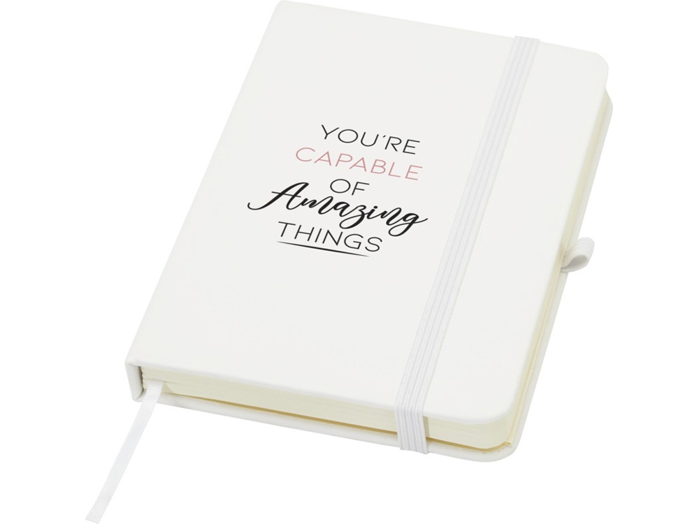 Блокнот Spectrum Plus формата А6 в твердой обложке с закругленными углами — это не только необходимая вещь в офисе, но и прекрасная возможность для продвижения вашего бренда. Картонный блокнот имеет мягкую на ощупь обложку и 80 линованных листов кремового цвета плотностью 70 г/м², идеально подходит для записи быстрых идей или длинных заметок. Блокнот оснащен петлей для ручки, эластичной застежкой, ленточкой-закладкой и карманом-гармошкой.