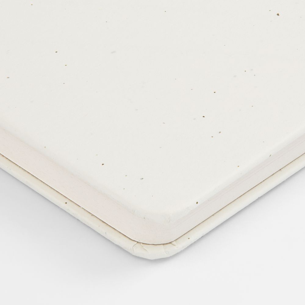 Бумага и обложка произведены из переработанных пакетов из под молока. Обложка из картона плотностью 140 г/м² .