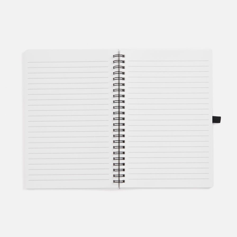 Блокнот из каменной бумаги на пружине с резинкой для ручки.