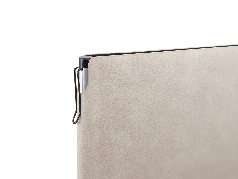Этот блокнот идеально сочетает в себе функциональность и удобство использования. Гибкая текстурная обложка, напоминающая замшу, делает блокнот тактильно приятным. Срез в цвет обложки добавляет блокноту элегантности. С этим блокнотом ручка всегда будет под рукой, - корешок имеет расстояние до блока и специальный вырез, позволяющий разместить ручку. Внутри блокнота 96 листов кремовой бумаги повышенной плотности 80 г/м2 с FSC сертификатом. Линовка основного блока в линейку, в конце по 4 страницы в клетку, в точку и нелинованные + 1 страница с линейкой. - ляссе и срез в тон обложки; - формат А5; - бумага с сертификатом ответственного лесопользования FSC.