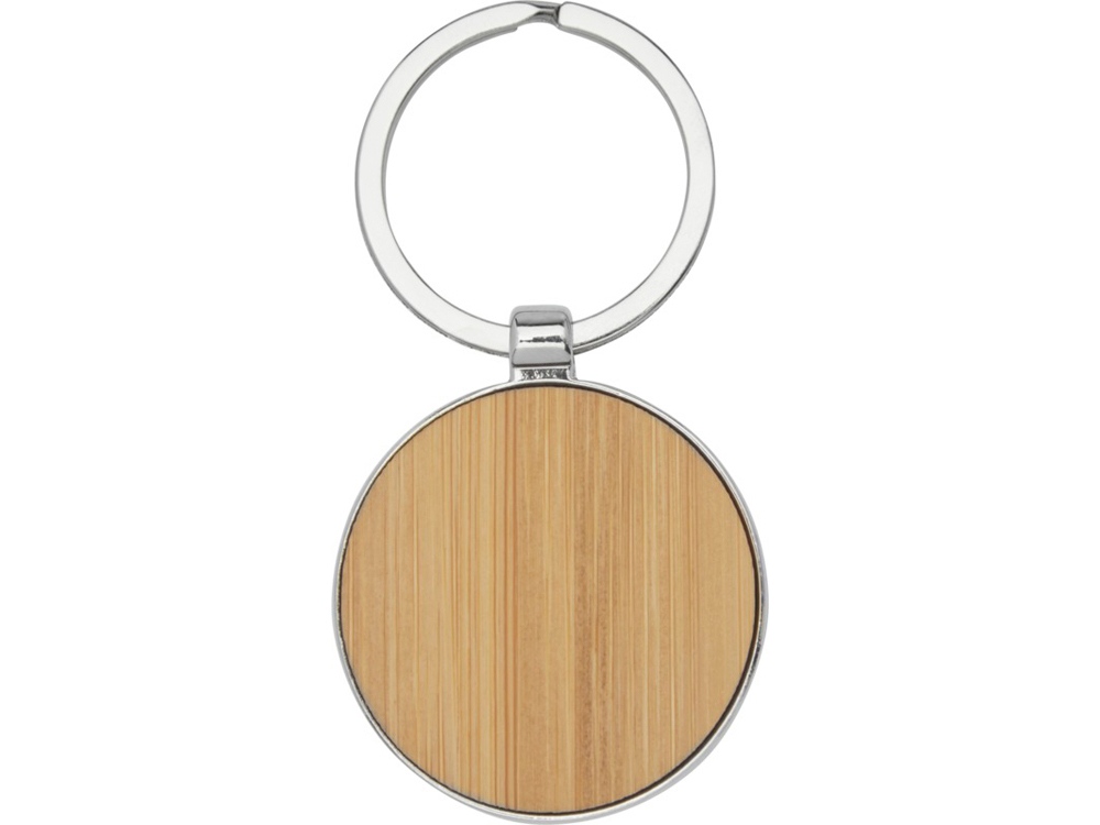 Круглый брелок премиум-качества из бамбука с металлическим корпусом из цинкового сплава, поставляемый в коричневой упаковке из шрифтовой бумаги. Диаметр брелка составляет 3 см. Подходит для лазерной гравировки.