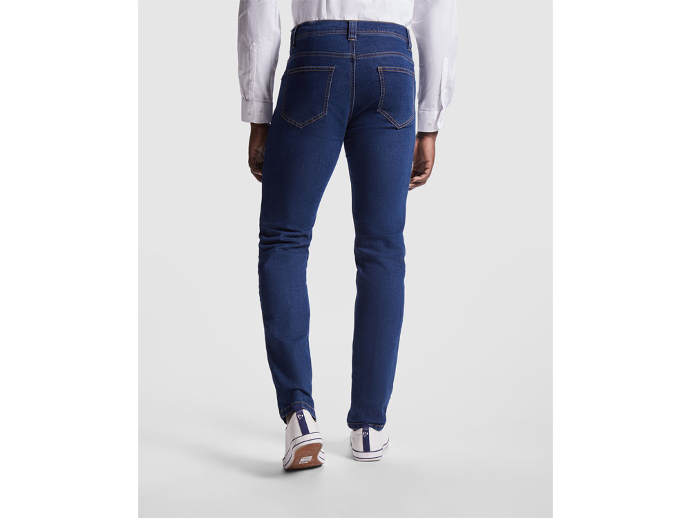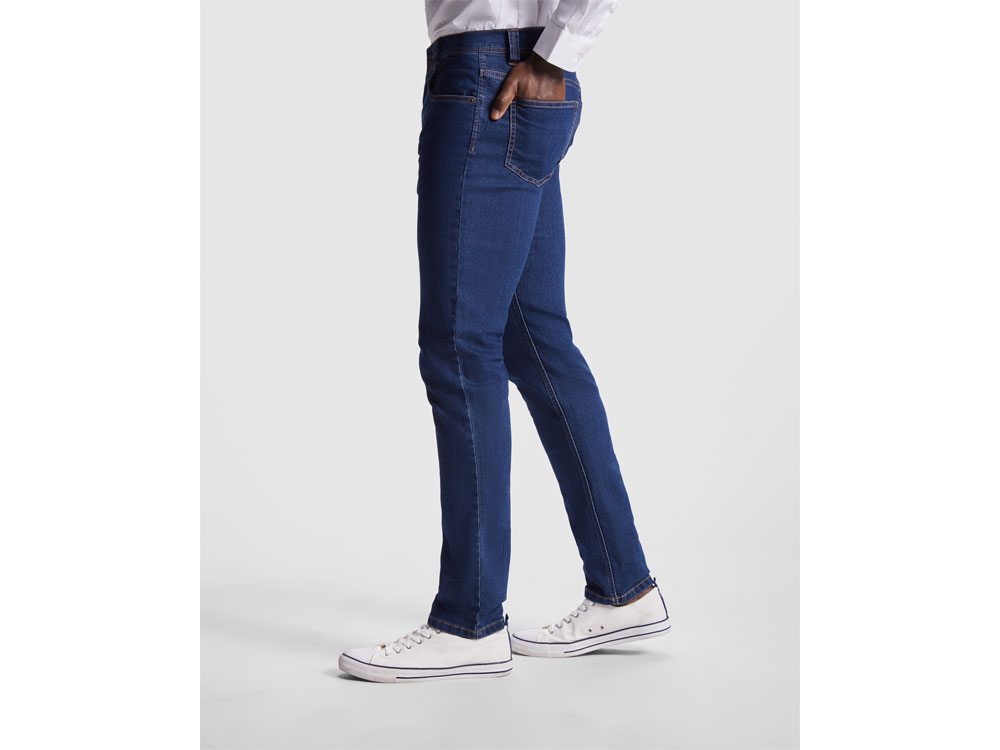 Джинсы мужские. · Классический крой и средняя посадка. · Пояс с 5 шлевками. · Застежка на металлическую молнию. · Два передних кармана и карман для монет. · Два задних кармана. · Полуприлегающий силуэт из ткани с эластаном.