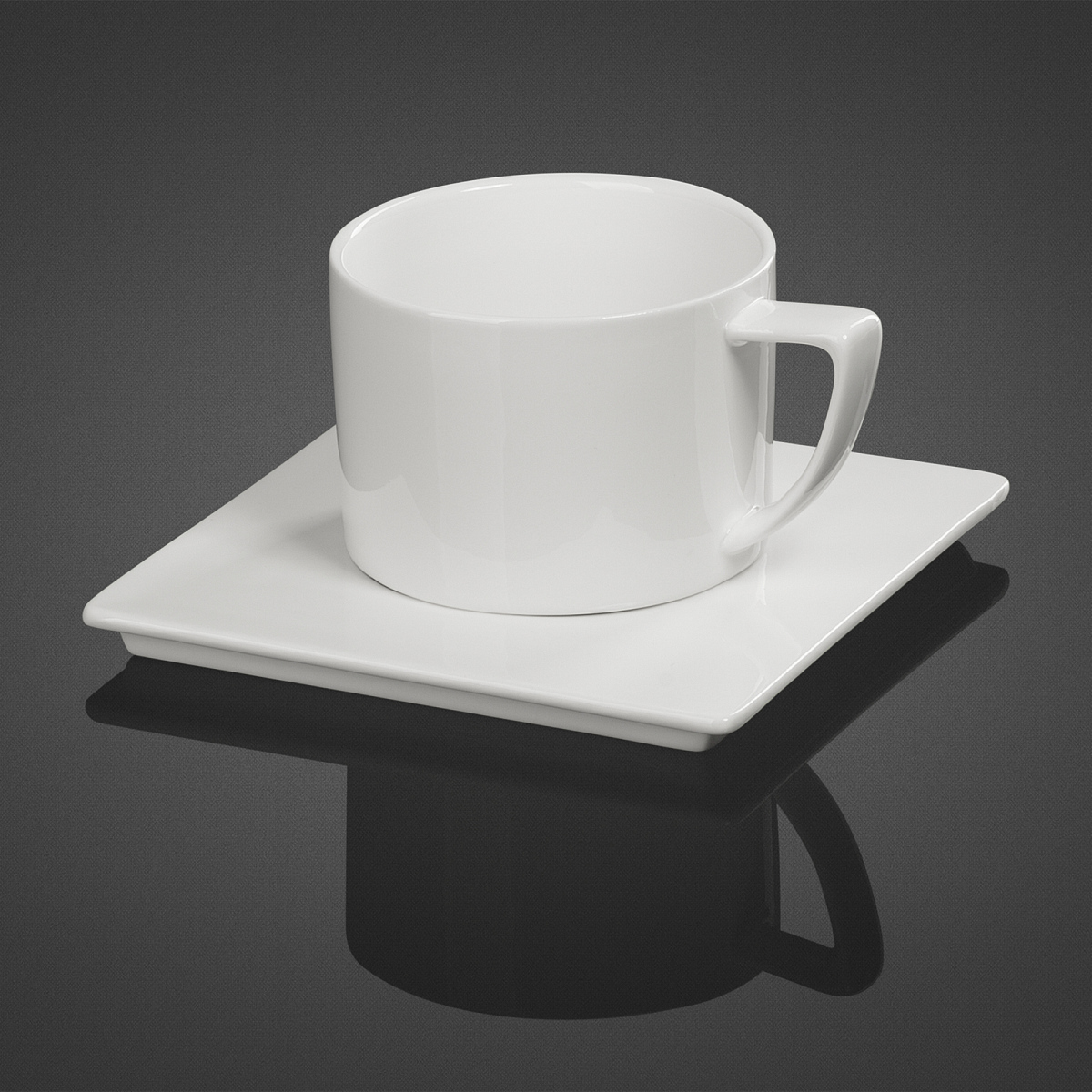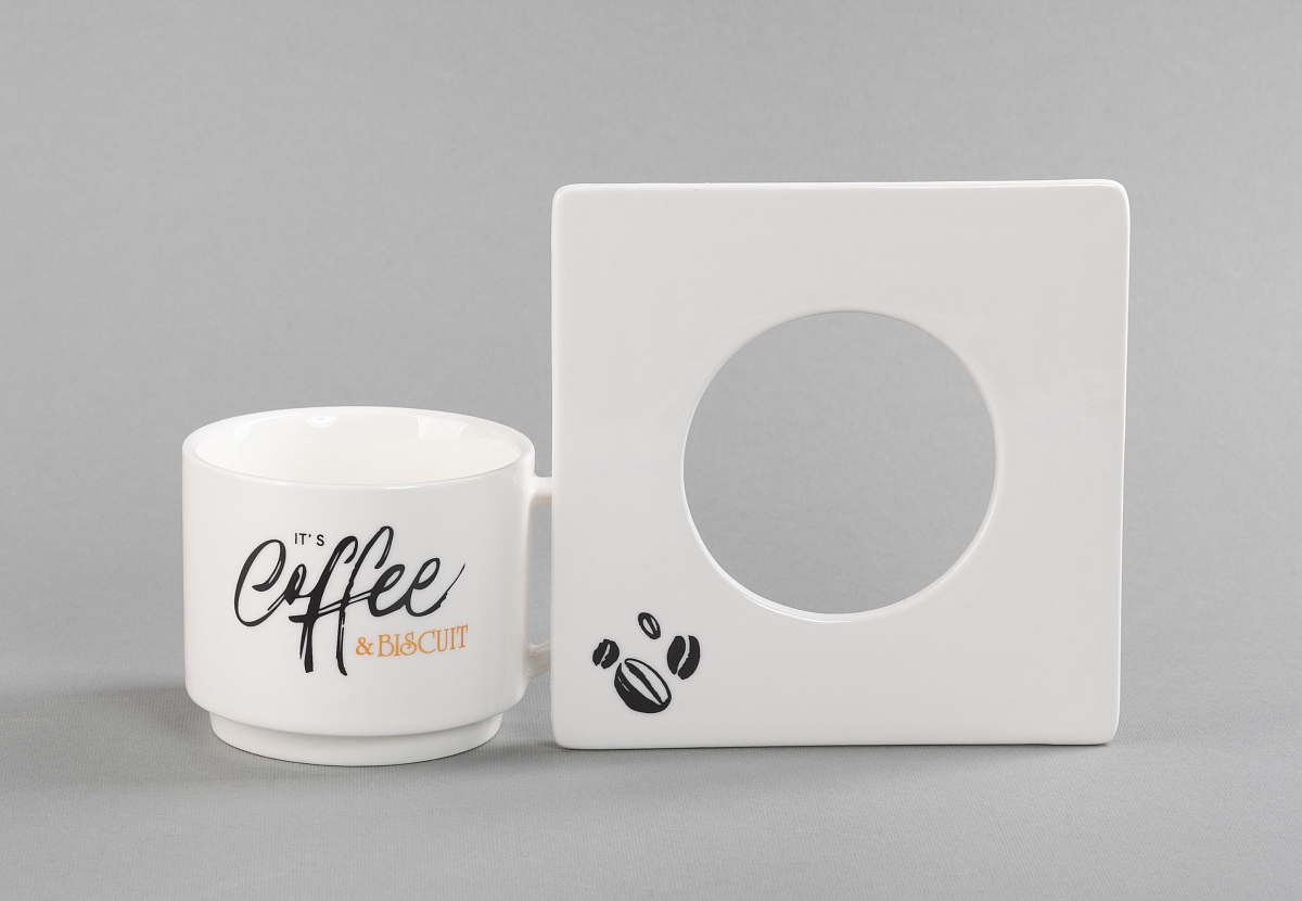 Изделия выполнены из белого фарфора, стильную чашку объемом 280 мл эффектно дополняет оригинальная форма блюдца.
