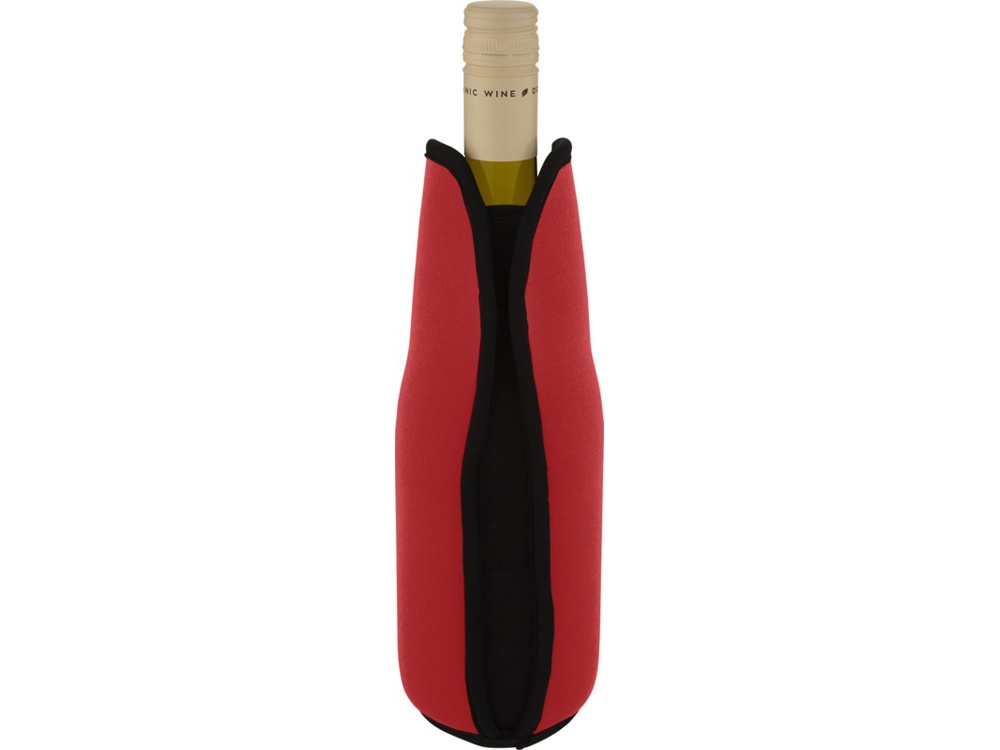Держатель-рукав из переработанного неопрена для бутылки с вином с тонкой прострочкой и дополнительной изоляцией, которая сохраняет вино прохладным в течение длительного времени и с помощью которой держать бутылку гораздо удобнее. Держатель растягивается, поэтому подойдет под любой размер бутылки и будет плотно ее удерживать. Он также не даст бутылке разбиться во время транспортировки.