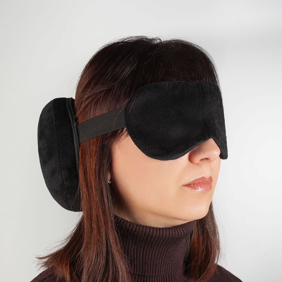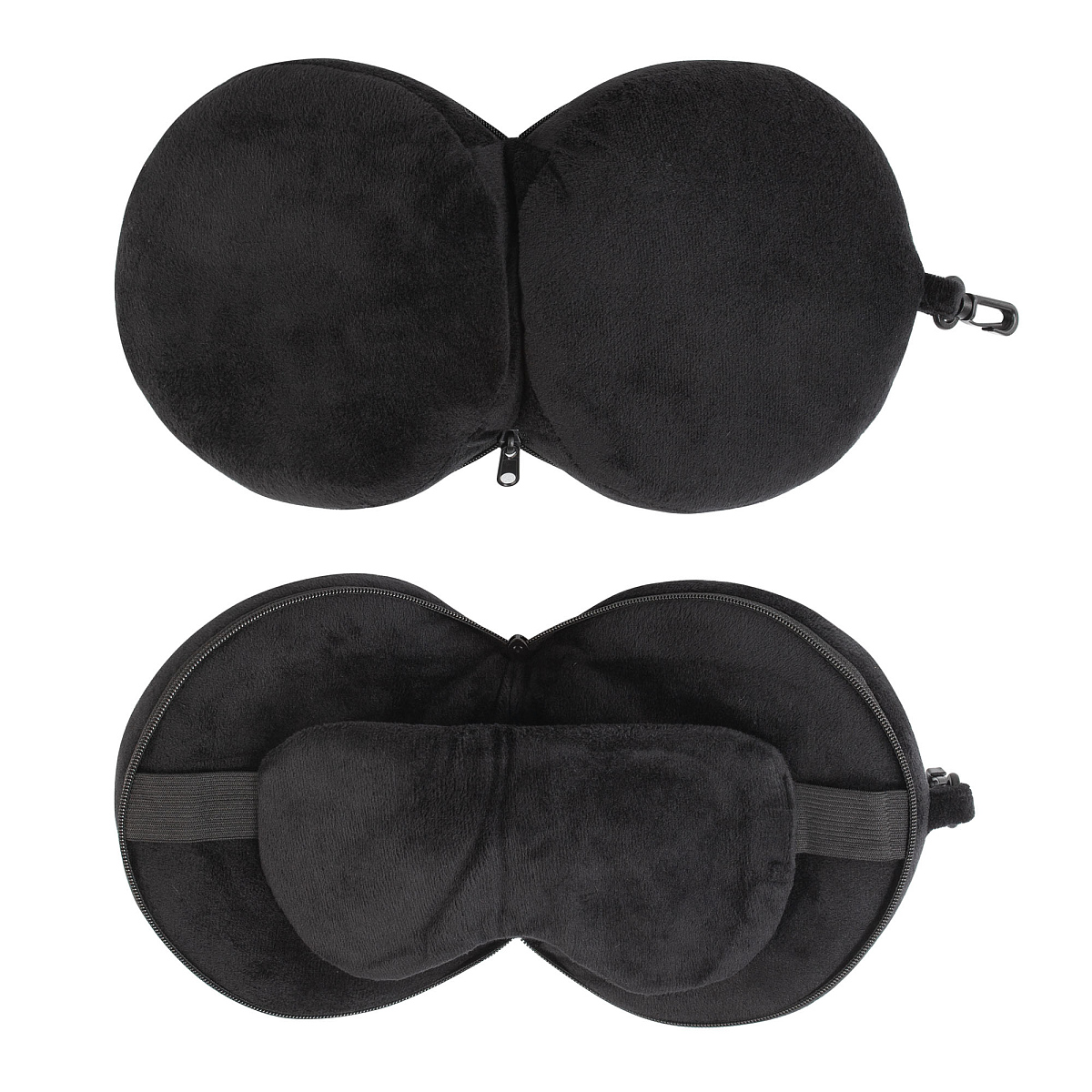 "2Go" - когда дорога в радость! Компактный аксессуар 2в1: маска и подушка для путешествий легко поместится в сумке или рюкзаке, можно использовать карабин для крепления снаружи. Практичный черный цвет.