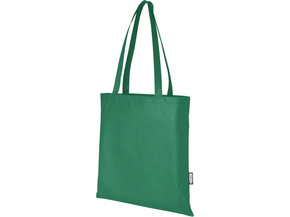 Большая эко-сумка Zeus из переработанных материалов, сертифицированных GRS, изготовленная из прочного и устойчивого к разрыву переработанного PET-пластика, является идеальным и более экологичным вариантом для ярмарок или конференций. Тонкий дизайн делает эту модель элегантной и подходящей для ношения легких предметов, например, блокнота и ручки. Ручки имеют длину 29 см, поэтому эко-сумку легко носить через плечо. Прочность до 5 кг. GRS certified recycled polyester, 80 g/m2.