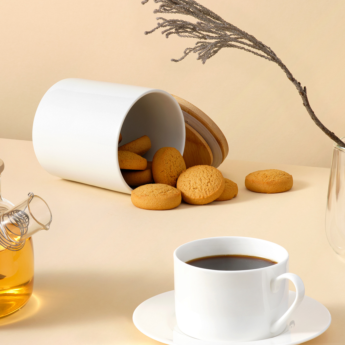Контейнер прекрасно подойдет для хранения различных сыпучих продуктов: чая, кофе, сахара, круп и многого другого. Емкость классической круглой формы не только поможет хранить разнообразные сыпучие продукты, но и стильно дополнит интерьер кухни.