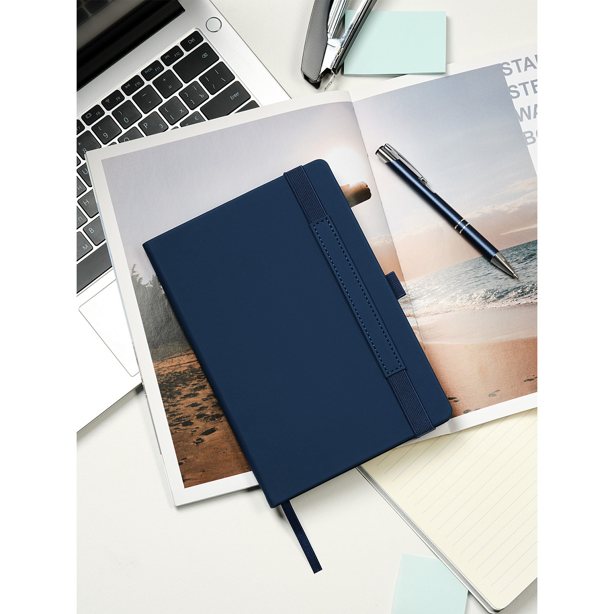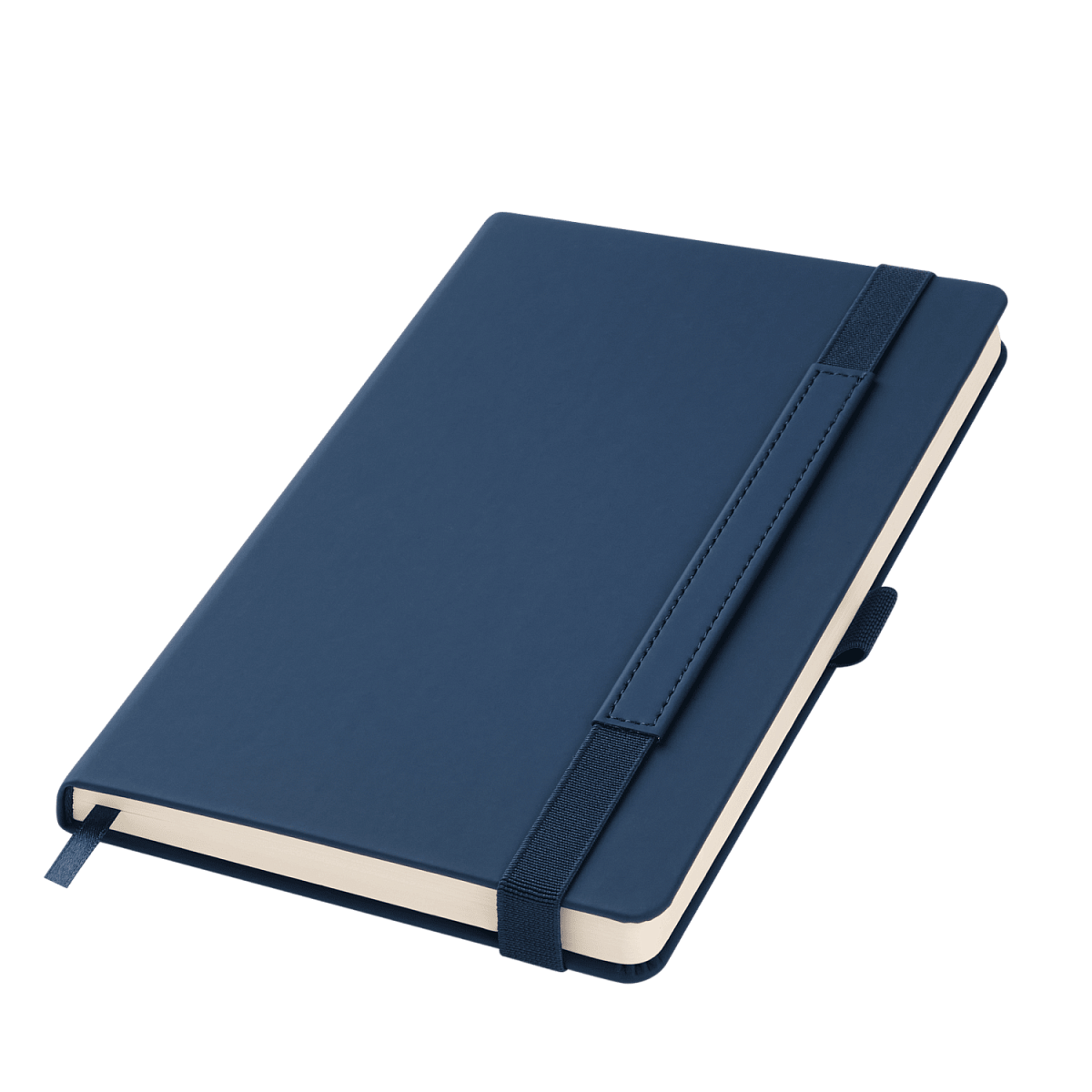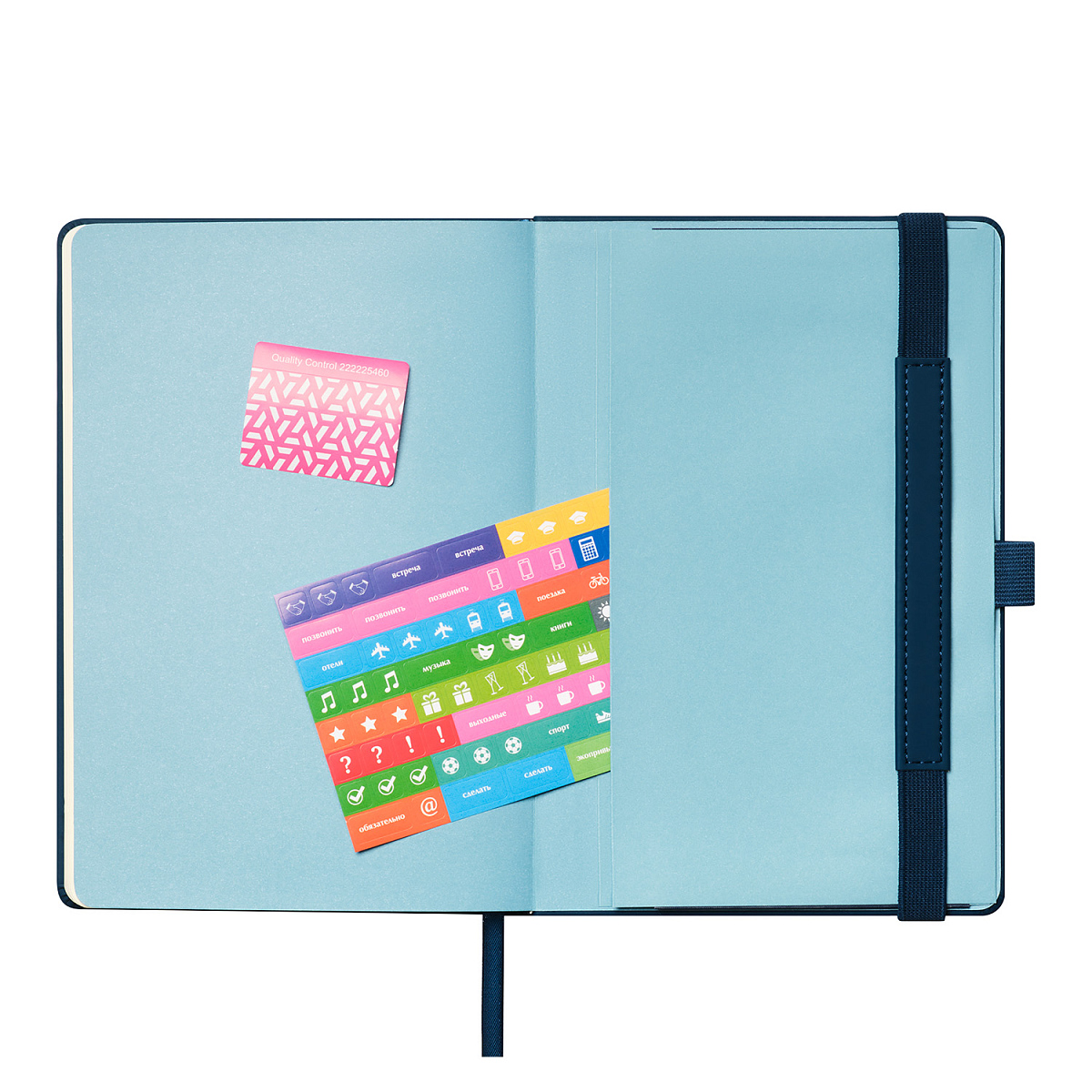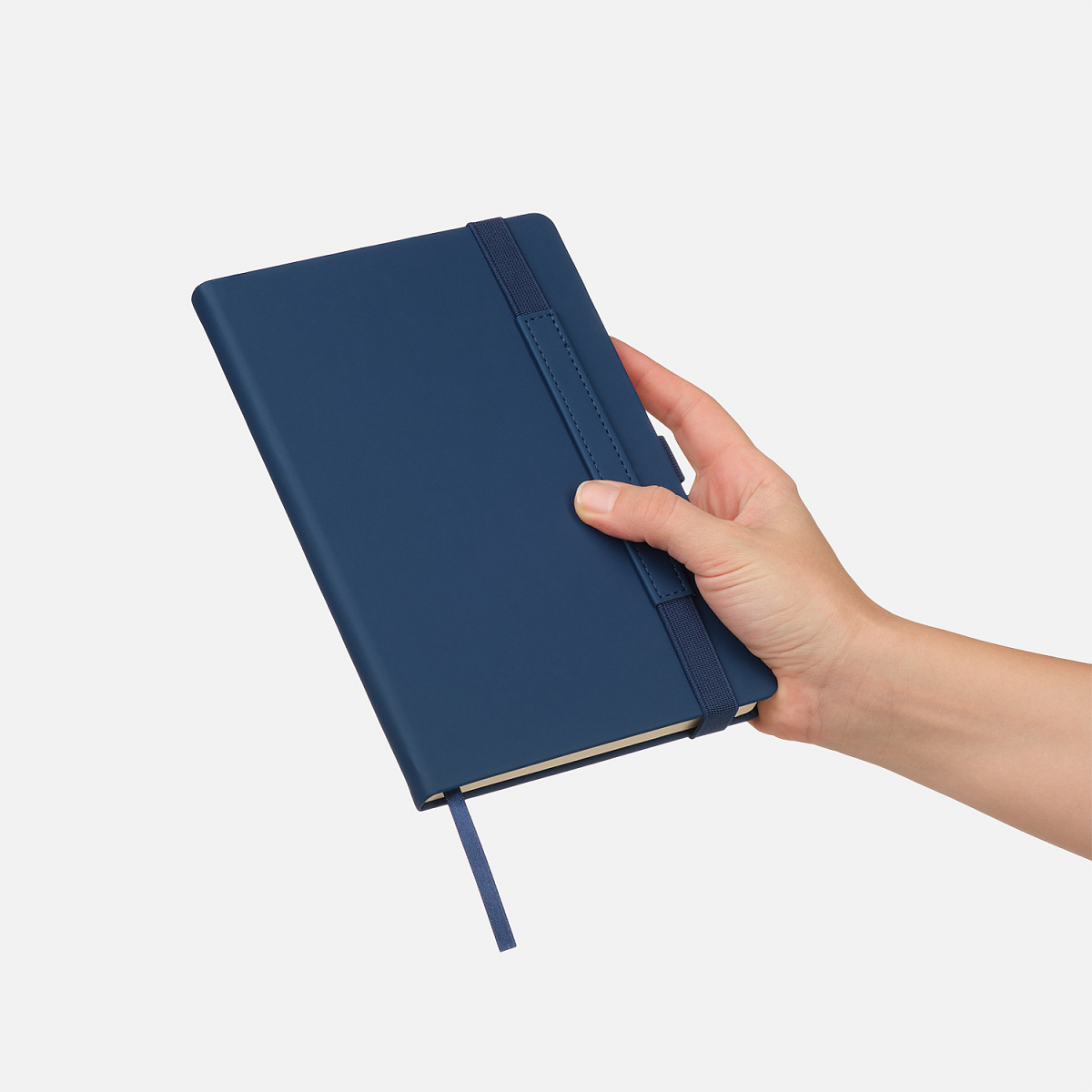 Вертикальная резинка-фиксатор с вставкой из ПУ-материала обложки и петелька под ручку, в цвет обложки