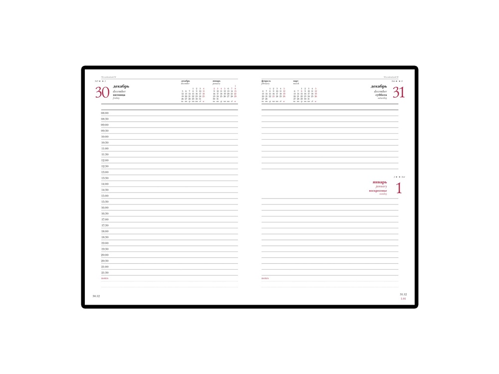 Датированный ежедневник SIDNEY NEBRASKA формата А5 на 2026 год - идеальный помощник в деле планирования рабочего времени для тех, кто ценит рационализм и функциональность. Твердая обложка из искусственной кожи с благородной глянцевой поверхностью, максимально повторяющей фактуру натуральной кожи, и практичный книжный переплет надежно предохраняют блок от механических повреждений. Благородство и статусность придают ежедневнику отстрочка по периметру в тон, скругленные углы, закладка-ляссе бордового цвета, золотой срез. Внутренний блок выполнен из белой бумаги плотностью 70 г/кв.м и имеет раздел справочной информации на 16 страницах.