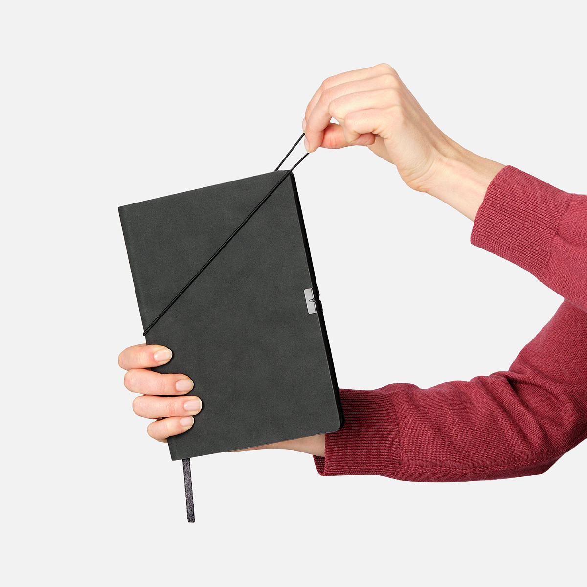 Резинка в тон обложки, горизонтальная, с металлическим фиксатором на обеих сторонах обложки