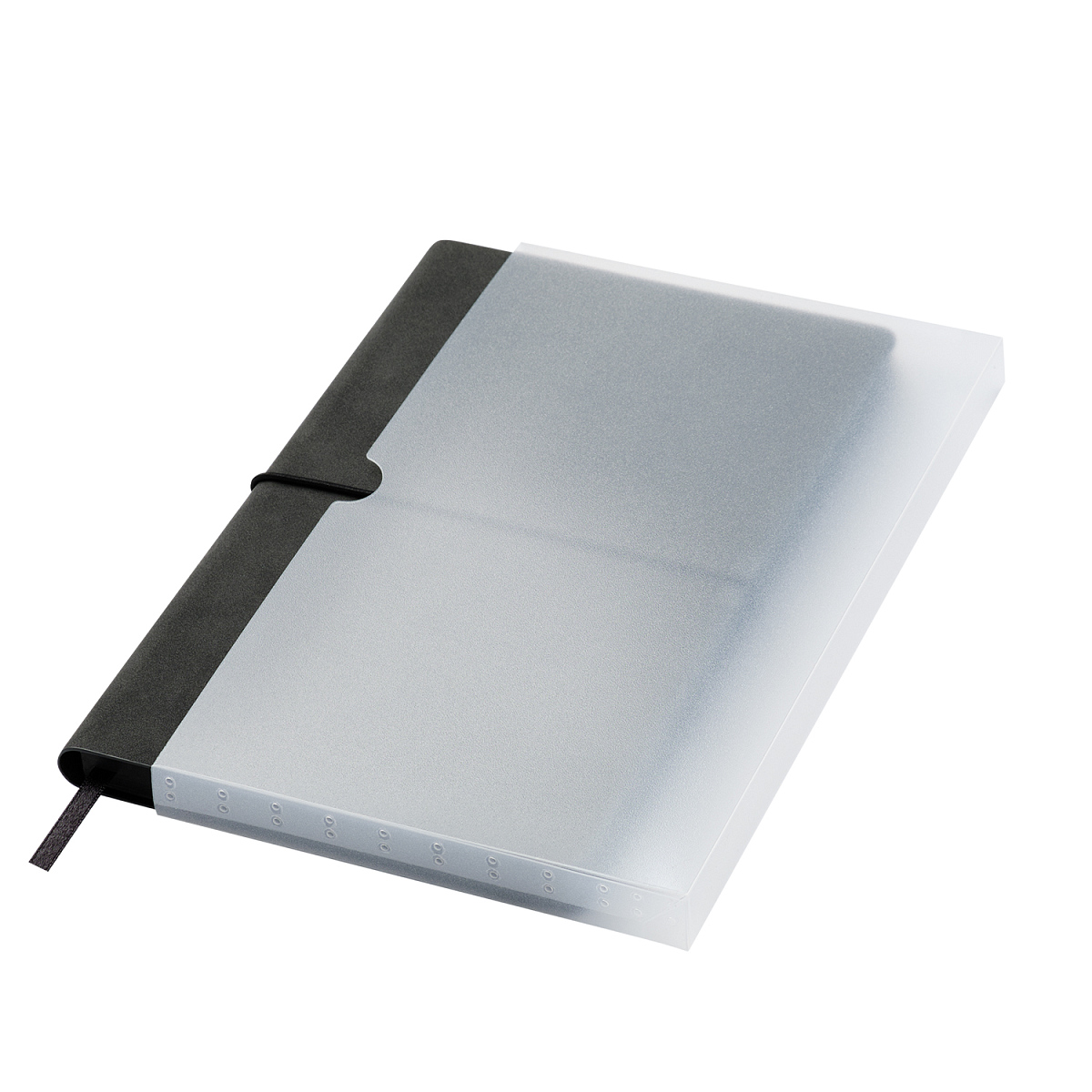 Горизонтальная резинка, фиксирующая обложку, дополнена металлическими элементами, которые не только защищают обложку от повреждений, но и служат стильным акцентом. Матовый срез в тон обложки и светло-кремовые страницы из гладкого, слегка шелковистого офсета подчеркивают изысканность дизайна. Атласное ляссе гармонично завершает образ этого элегантного ежедневника.