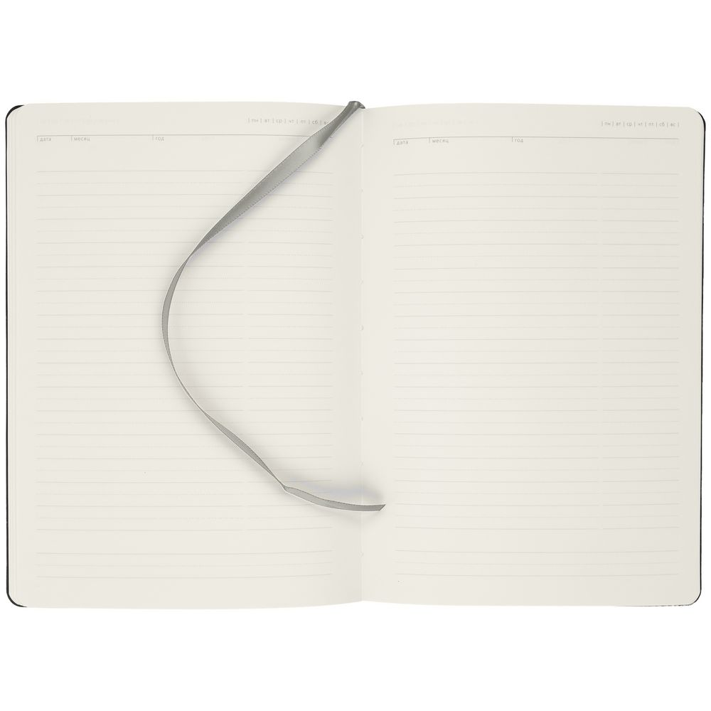 Ежедневник с гибкой обложкой, выполнен из материала Latte, серый, дополнен ляссе в цвет обложки.