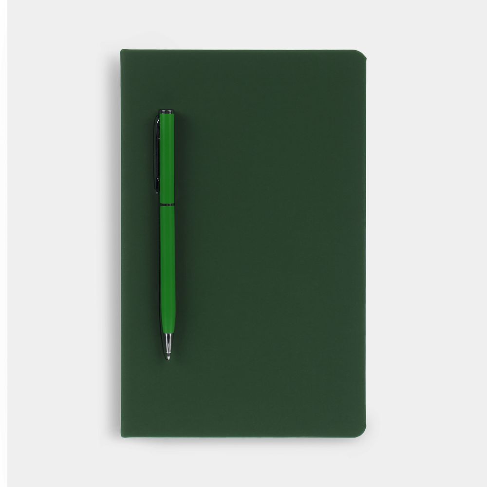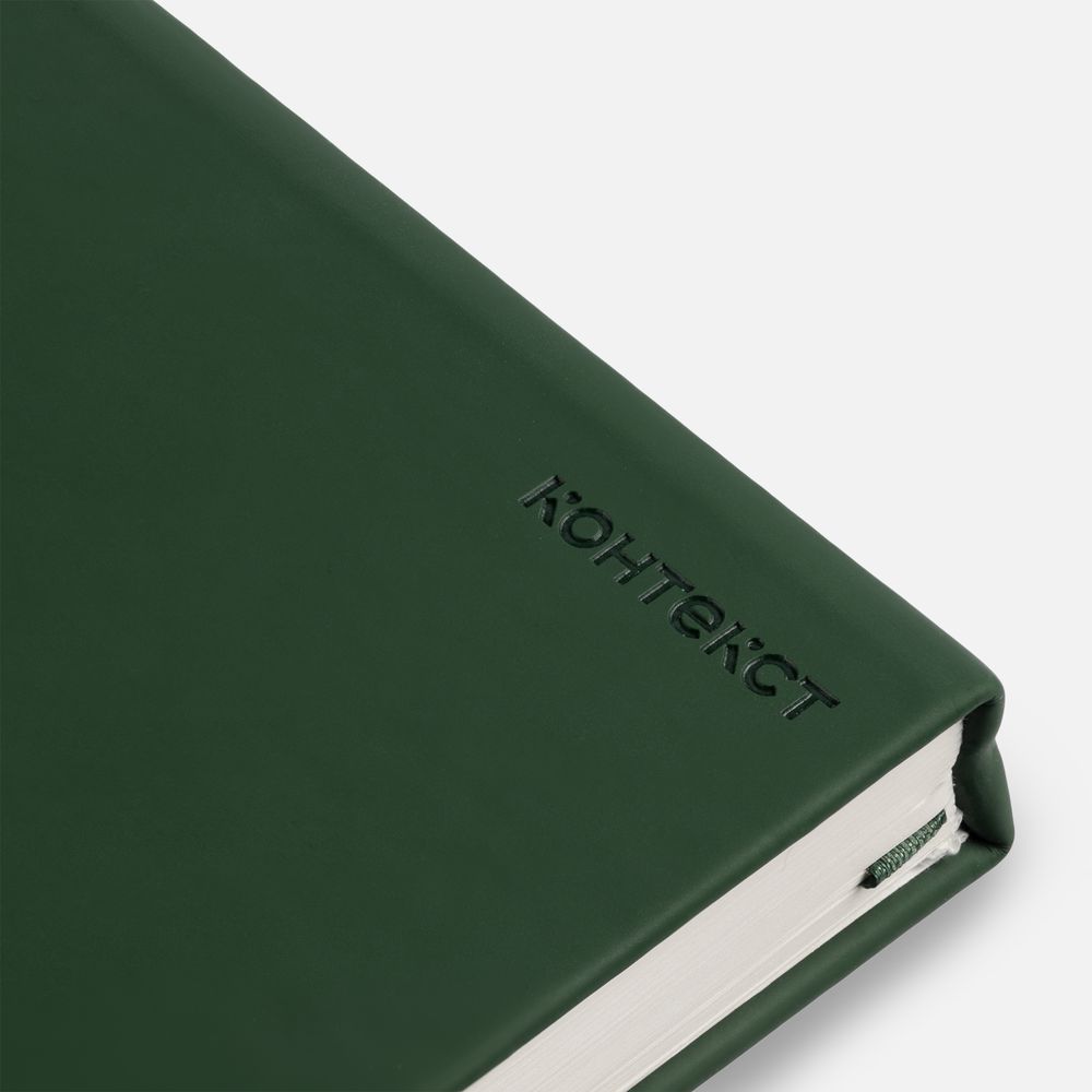 Ежедневник в твердой обложке, выполненной из материала Soft Touch, зеленый FF, дополнен цветным ляссе и магнитом, удерживающим ручку.
