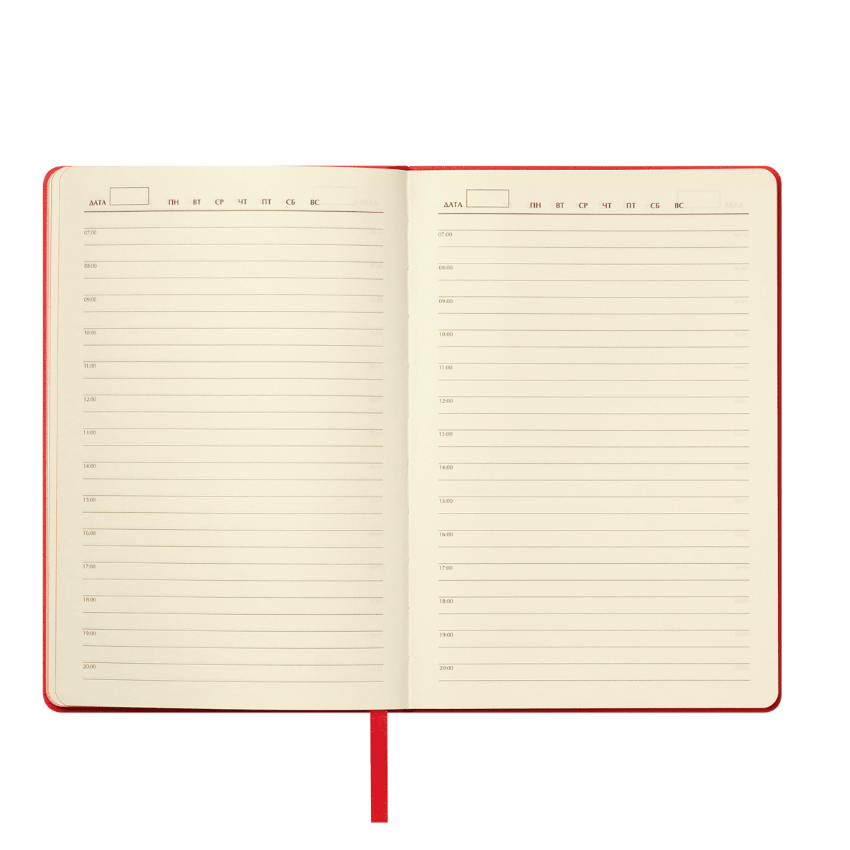 Недатированный ежедневник в гибкой обложке из высококачественной искусственной кожи сочетает в себе практичность и стильный дизайн. Текстурированная матовая поверхность с деликатным рельефом имитирует натуральную кожу, а скругленные углы обложки и блока добавляют изящества.