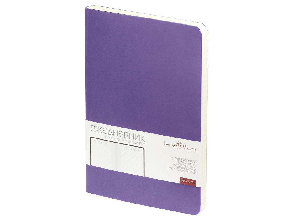 Недатированный ежедневник Megapolis Flex от бренда Bruno Visconti - это качественный корпоративный подарок по выгодной цене, произведенный специально под персонализацию. Представлен в универсальном формате А5 и состоит из 272 страниц. Элегантная закругленная flex обложка из гладкого кожзама имеет гибкую конструкцию и приятна на ощупь. А интегральный переплет позволяет сэкономить место в деловой сумке или портфеле – ежедневник можно просто свернуть в трубку или согнуть пополам. В ежедневнике Megapolis Flex есть полезная справочная информация и телефонная книга, а также страницы для записи идей, мыслей и составления рабочих планов. Для изготовления страниц используется качественный бежевый офсет повышенной плотности (70 г/кв м). Блок не привязан к конкретным датам – они указываются в выделенном поле вверху страницы. Тонированная бумага не дает глазам утомиться даже при длительной работе. Все ежедневники от бренда Bruno Visconti можно персонализировать с помощью тиснения обложки - золотой или серебряной фольгой. Наши ежедневники помогут быть успешным и эффективным в карьере и повседневной жизни!