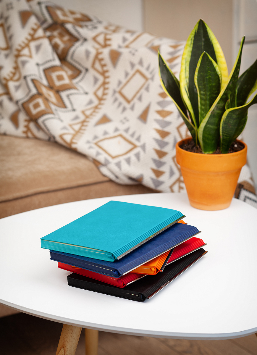 Притягивает внимание, офисные принадлежности и желание что-нибудь срочно записать. Минималистичный в оформлении ежедневник «Аскона» представлен в ярких насыщенных цветах с цветным срезом. Гибкая обложка имеет фактуру натуральной кожи, её дополняет металлическая планка корешка. Блок из плотной тонированной бумаги в 256 страниц удобно использовать с чёрной лентой-ляссе в цвет среза ежедневника.