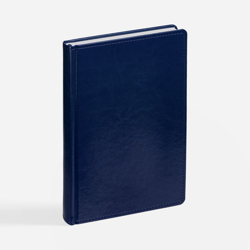 Ежедневник с твердой обложкой без поролона, выполнен из материала Nebraska, синий НН, дополнен ляссе и капталом в цвет обложки.