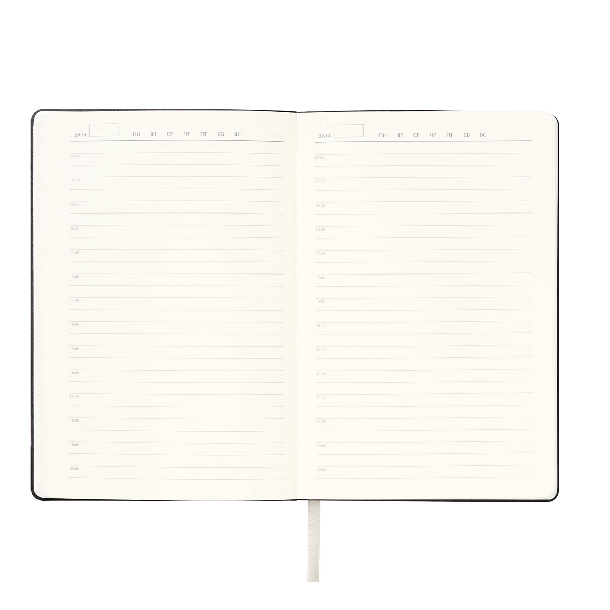 Матовое покрытие Soft Touch с деликатным пудровым эффектом подарит неповторимое тактильное удовольствие. А кремовые форзац, нахзац и срез блока создадут гармоничное обрамление для гладких шелковистых страниц кремового оттенка. Элегантное атласное ляссе поможет вам легко ориентироваться в записях.