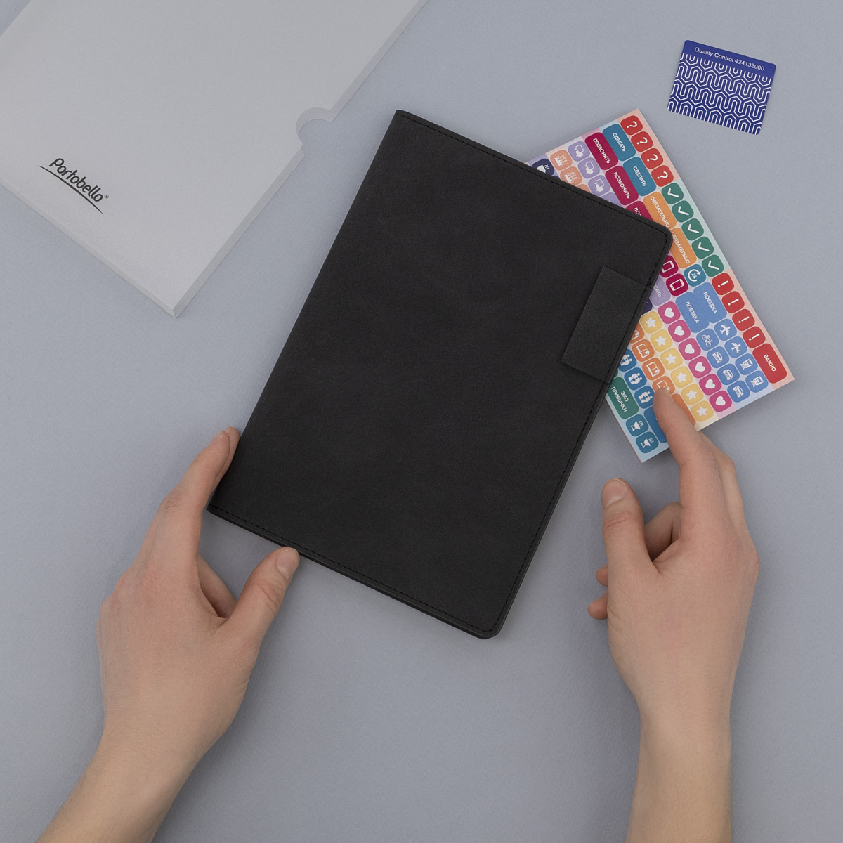 Мягкий на ощупь материал с мелкими вкраплениями имитирует натуральную замшу, а петелька для ручки добавляет практичности. Сдержанные оттенки обложки, форзаца и нахзаца гармонично сочетаются между собой.