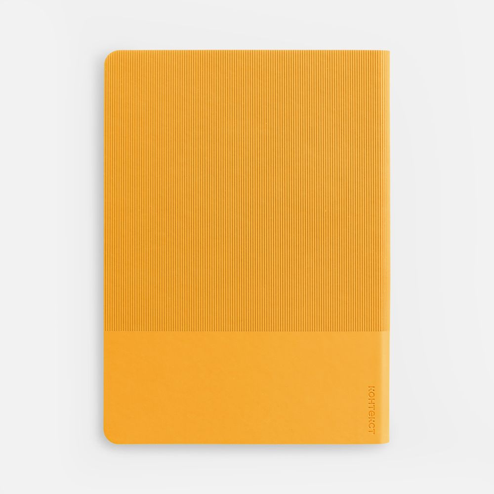Ежедневник с гибкой обложкой выполнен из материала Soft Touch, желтый KK и Latte, желтый (внутренний материал), дополнен ляссе желтого цвета и фактурным тиснением обложки.