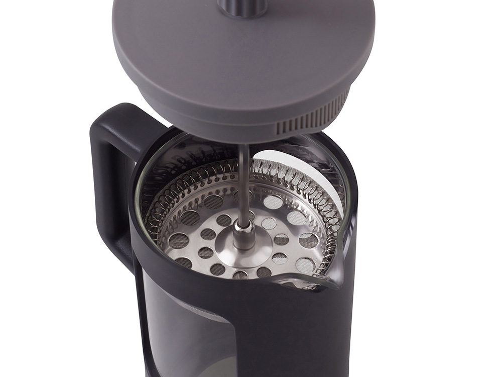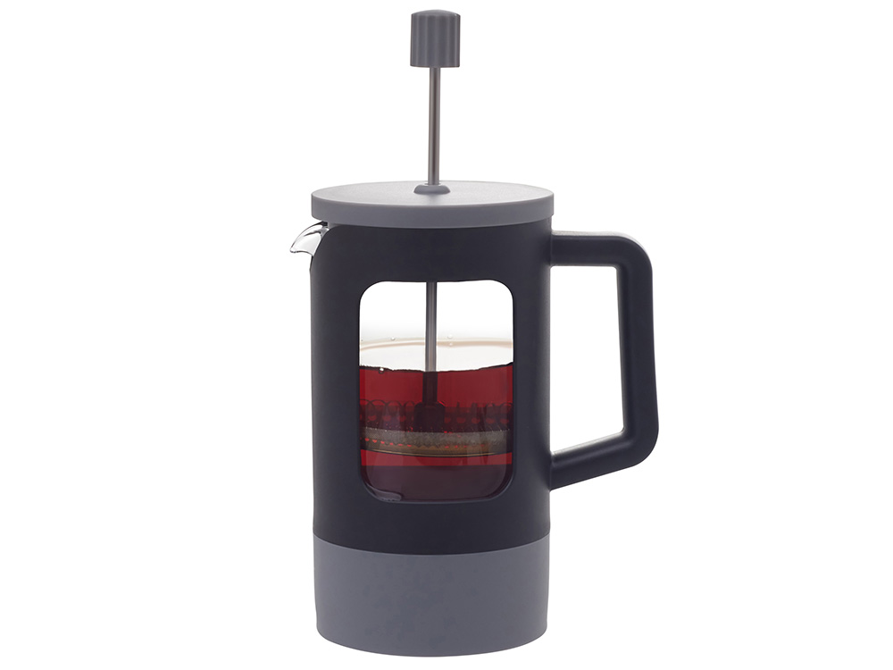 Френч-пресс Double Tone — элегантность контраста Сдержанная гармония черного и серого в пластиковом корпусе делает этот френч-пресс стильным акцентом любой кухни. Ключевые особенности: • Боросиликатное стекло, устойчивое к высоким температурам • Двухцветный корпус из ударопрочного пластика • Удобное поршневое крепление — плавное опускание • Стильная эргономичная ручка Технологии в деталях: • Система плавного прессования для идеальной экстракции • Универсальность: подойдет как для заваривания кофе, так и чая или травяных сборов • Объем 600 мл рассчитан на 3-4 чашки — оптимально для семейного использования или небольшой компании. Разрешается использовать в посудомоечной машине.