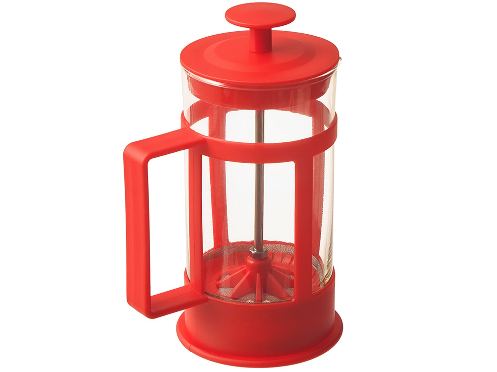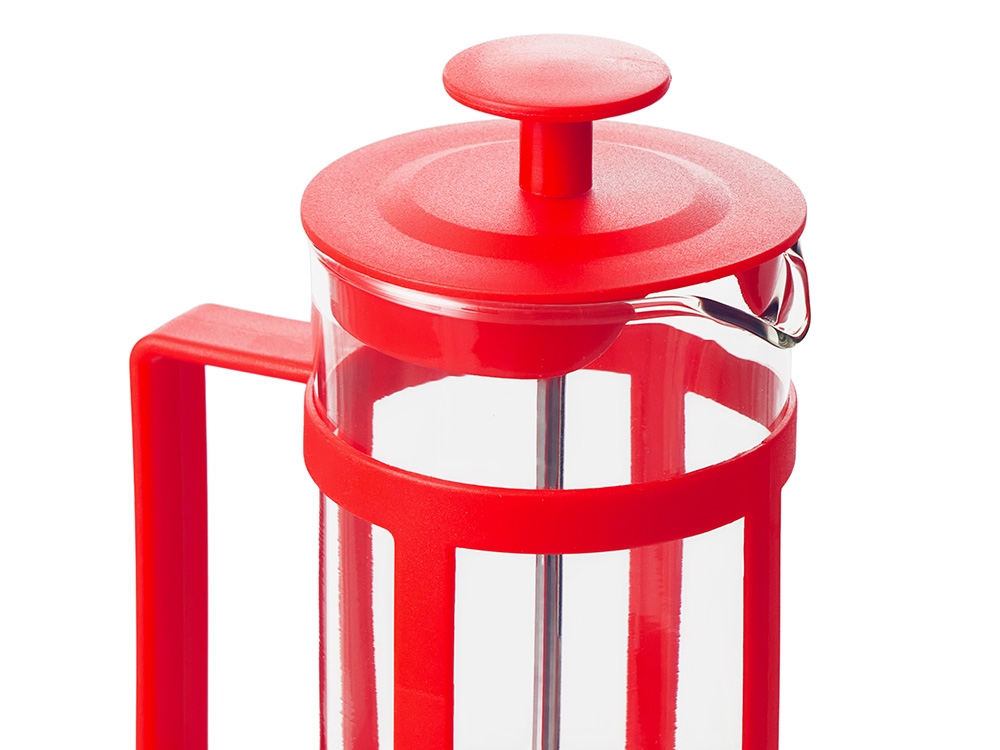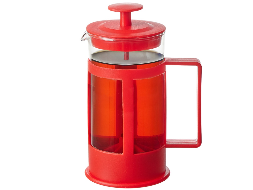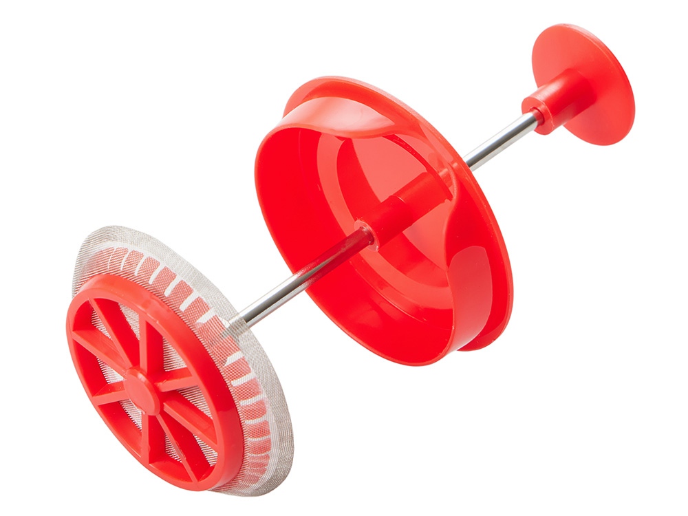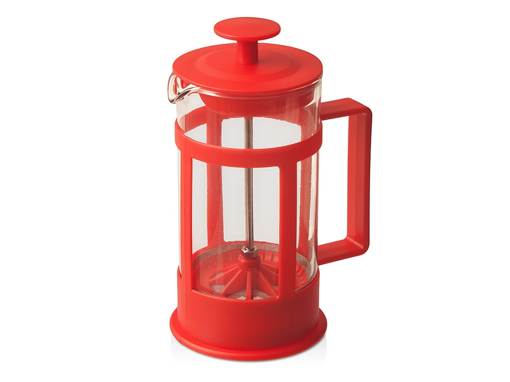 Этот кухонный прибор имеет плотно прилегающую пластиковую крышку, поршень из нержавеющей стали и пресс-фильтр с уплотнительным кольцом из пластика для отделения чайных листьев от воды.