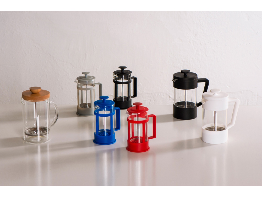 Этот кухонный прибор имеет плотно прилегающую пластиковую крышку, поршень из нержавеющей стали и пресс-фильтр с уплотнительным кольцом из пластика для отделения чайных листьев от воды.