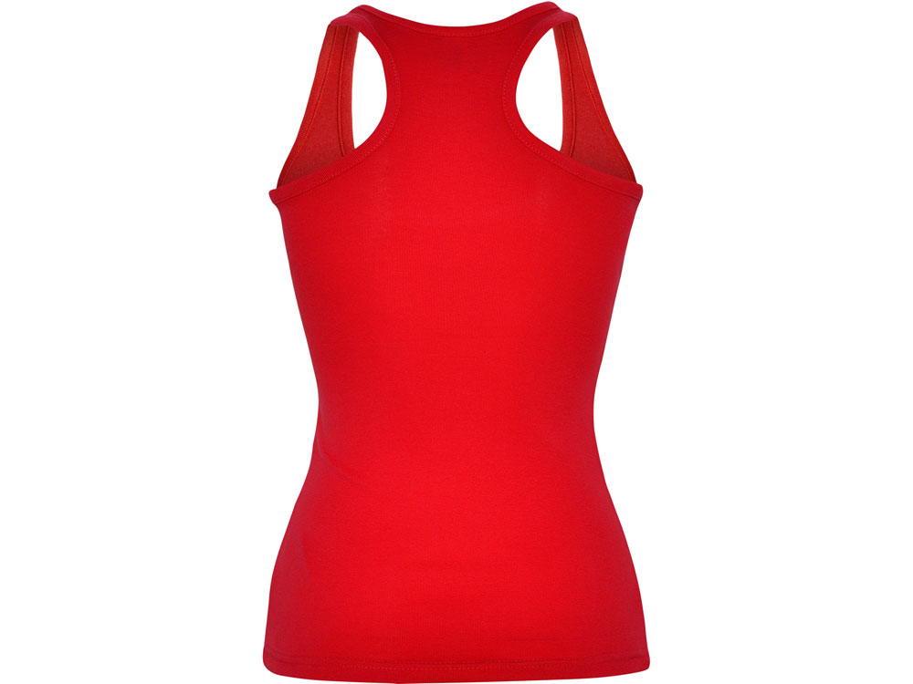 Майка приталенного силуэта с глубоким круглым вырезом горловины. Спортивная спинка, боковые швы.