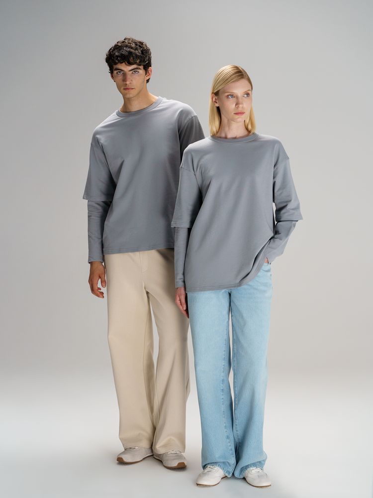 Футболка оверсайз с двойным рукавом Kosmos, светло-серая можно заказать в нашей компании по самой доступной цене от 2 095 рублей.