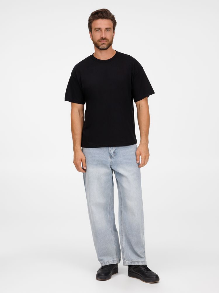 Футболка оверсайз унисекс с круглым вырезом и без боковых швов. Выполнена из смеси переработанного и обычного хлопка. Благодаря повышенной плотности отлично держит форму.