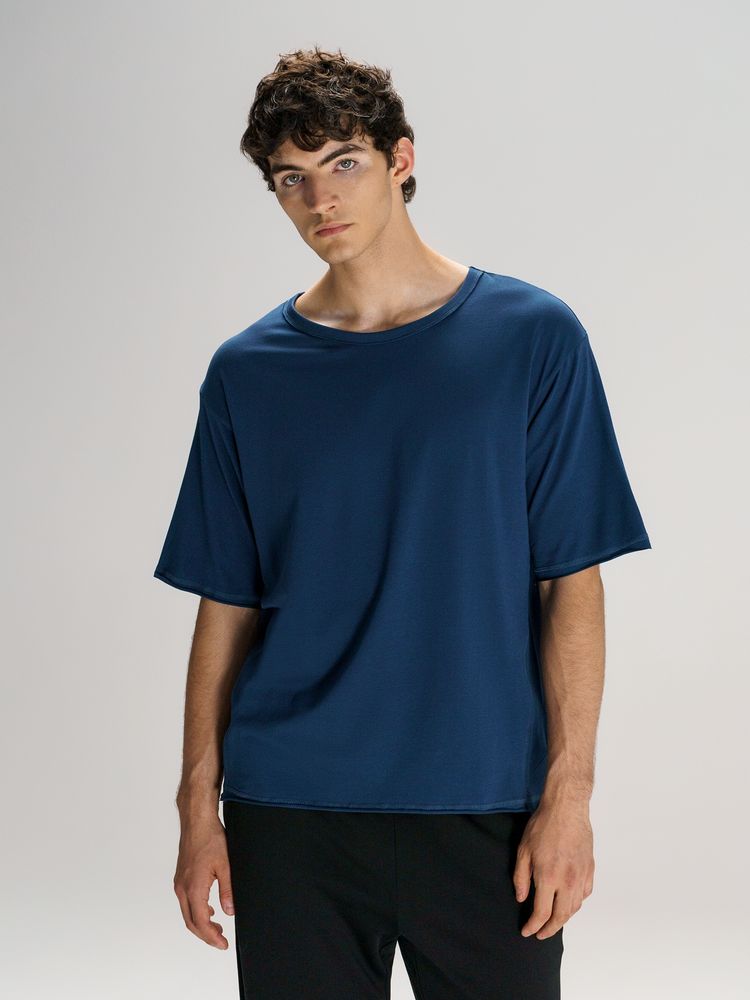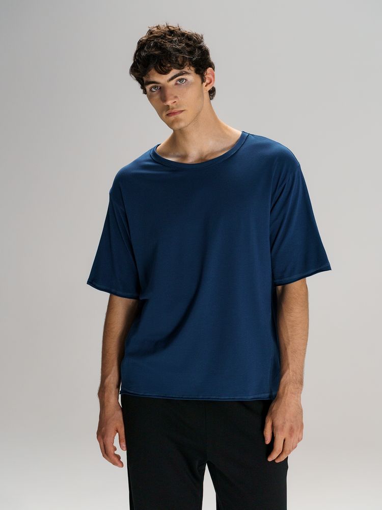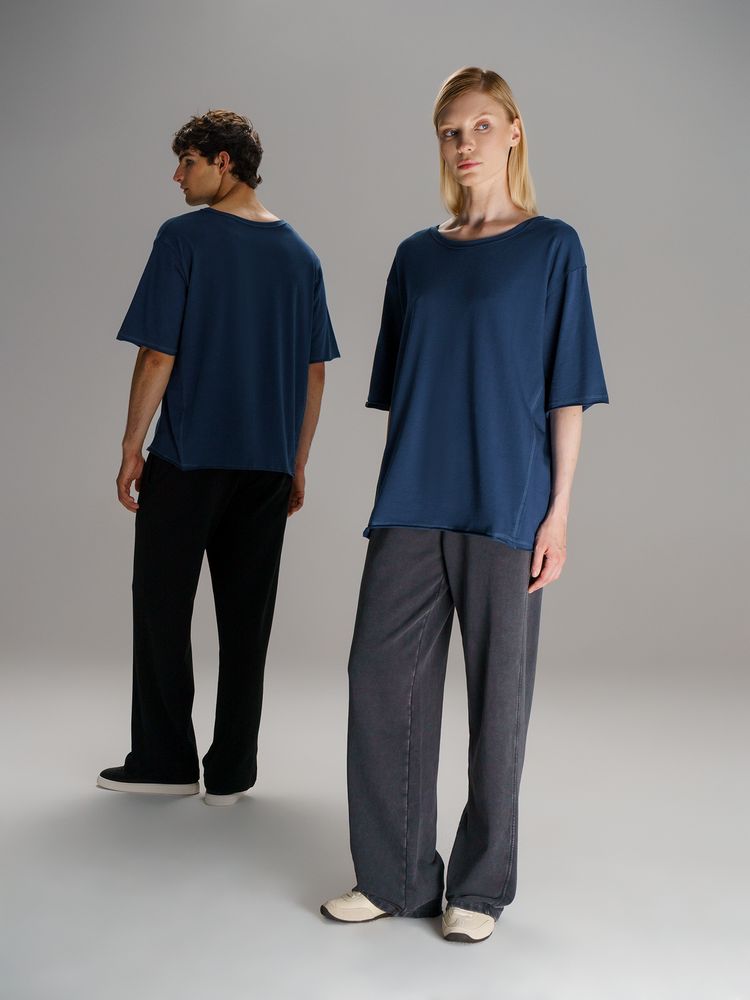 Футболка оверсайз унисекс Vozduh, темно-синяя можно заказать в нашей компании по самой доступной цене от 1 156 рублей.