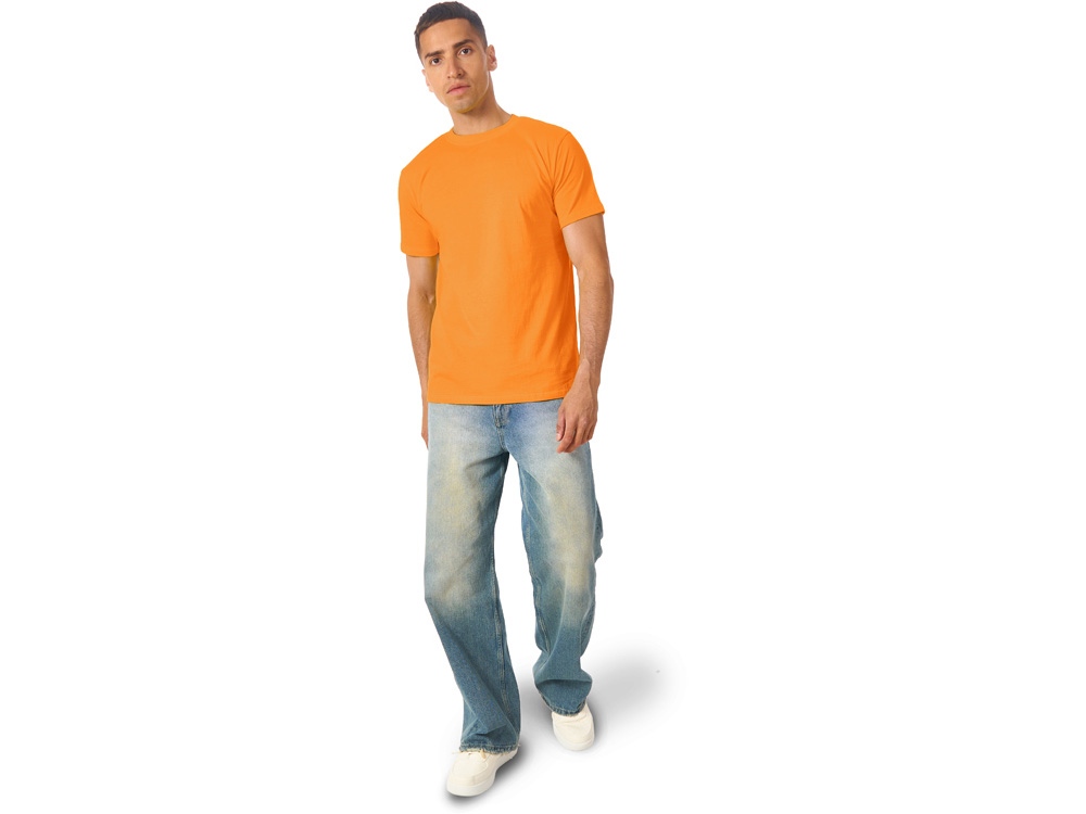 Мужская футболка сшита из натурального хлопка без боковых швов. Отлично подходит для нанесения рекламной информации. Возможна вышивка или трафаретная печать. Натуральный материал не вызывает раздражения кожи.