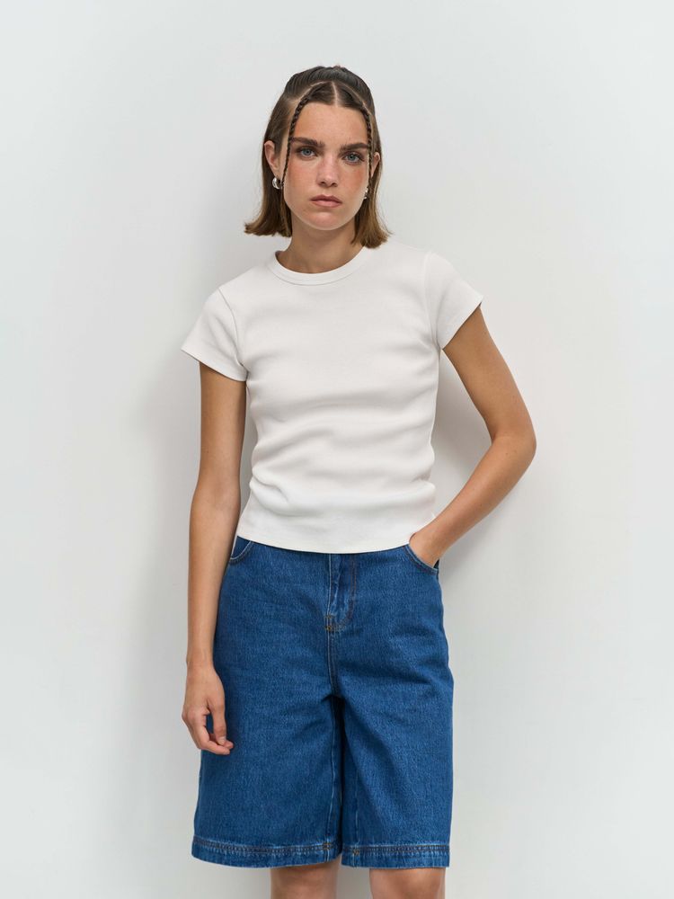 Приталенная женская футболка в рубчик из гребенного хлопка.