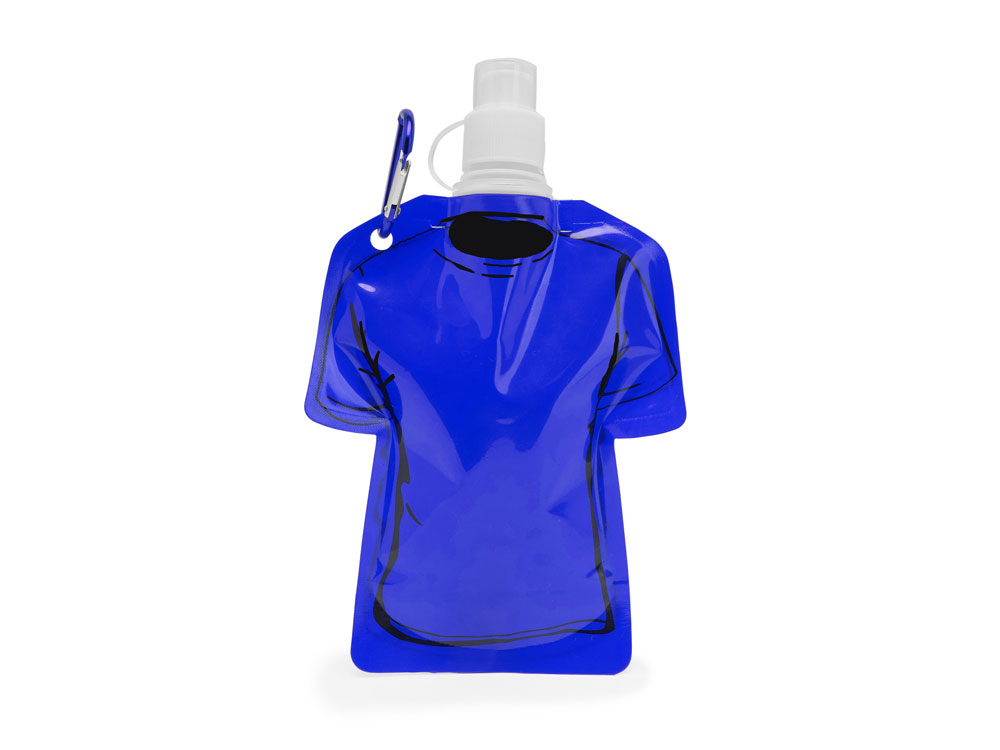 Гибкая емкость для питья в форме футболки, с защитным колпачком и карабином для удобства транспортировки. Объем 470 мл.