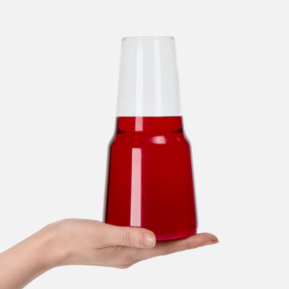 Благодаря крышке-стакану больше не нужно искать подходящую посуду или беспокоиться о свободном месте. Такой стакан будет всегда под рукой, ведь на кувшине он легко превращается в крышку. Это позволяет не только слегка освободить пространство, но и защитить напиток от пыли и посторонних запахов.