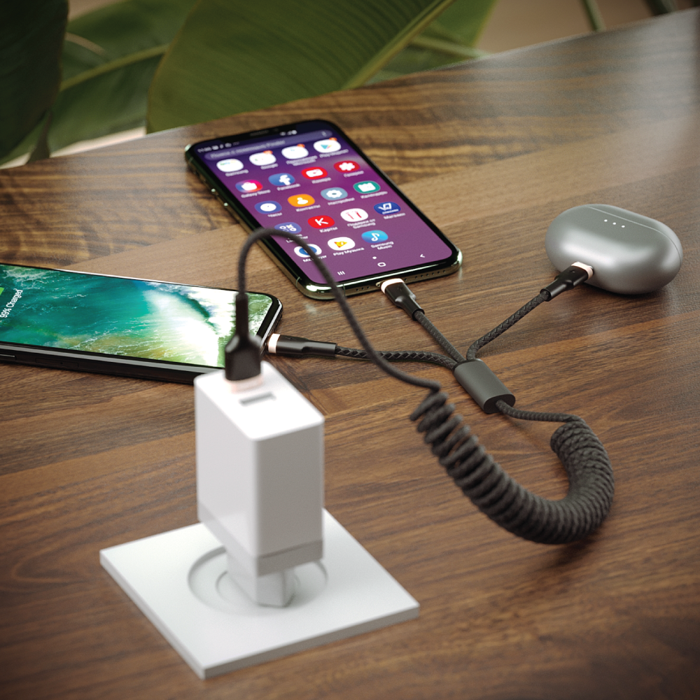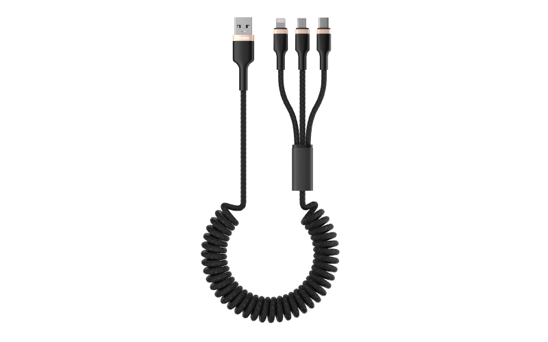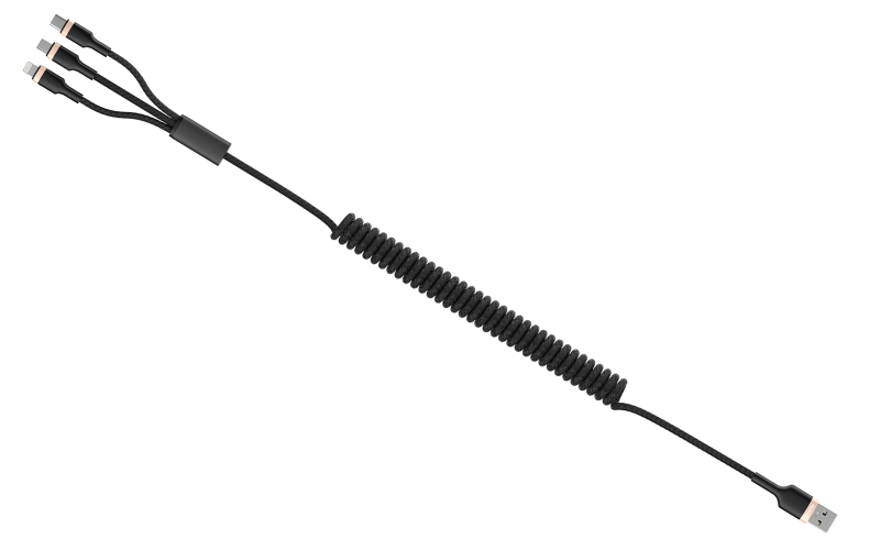 Особенности: современный кабель с большим местом под печать логотипа; максимальный ток нагрузки 3А; позволяет заряжать одновременно три устройства с разъемами 8 pin, microUSB и Type-C; витой кабель готов к работе не только с сетевым зарядным устройством или повербанком, но также с автомобильной зарядкой; без поддержки передачи данных, только для зарядки