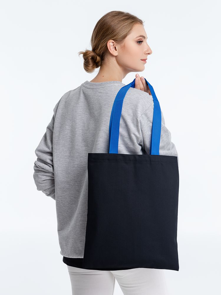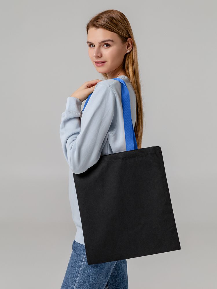 Холщовая сумка BrighTone, черная с ярко-синими ручками можно заказать в нашей компании по самой доступной цене от 581 рублей.