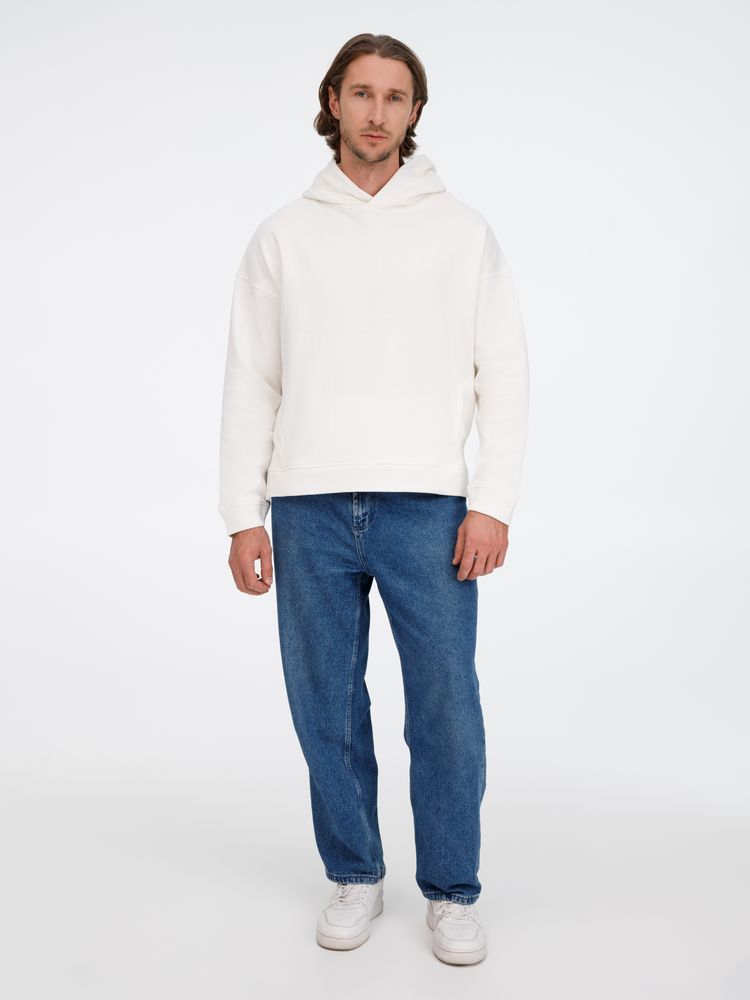 Худи унисекс оверсайз со спущенным плечом и внутренним карманом-кенгуру.