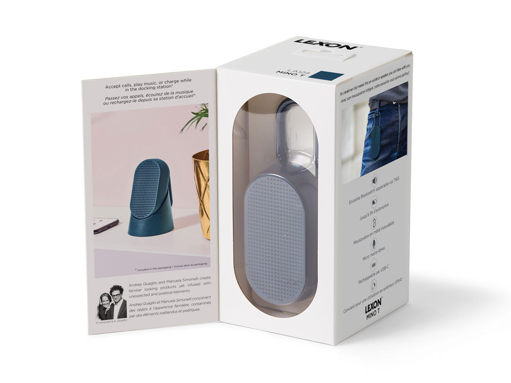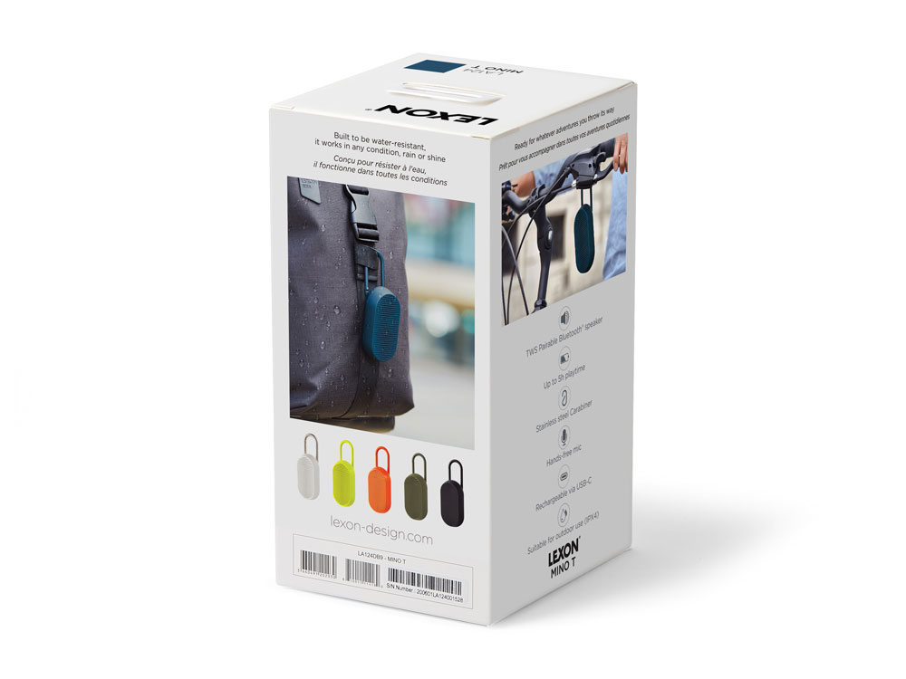 Mino T — это универсальная Bluetooth-колонка, созданная для путешествий. Карабин позволяет легко прикрепить её к сумке или велосипеду. Благодаря элегантному дизайну она гармонично впишется в интерьер, став современным элементом. Оснащённая пассивной басовой системой, Mino T обеспечивает качественное прослушивание, гарантируя сбалансированный и насыщенный звук в дороге. Не беспокойтесь о дожде: сверхпрочное покрытие делает её водонепроницаемой. Наслаждайтесь до 5 часов автономной работы в любых приключениях. Отвечайте на звонки, слушайте музыку или заряжайте колонку через кабель USB-C, установив её на док-станцию. - Bluetooth®-динамик со встроенным карабином - Совместимость с технологией TWS - Водонепроницаемость IPX4 - Микрофон hands-free - Пульт дистанционного управления для селфи - Bluetooth® 4.2 - Время работы аккумулятора: 5 ч - Время зарядки: 2 ч - Расстояние Bluetooth®: 10 м - Питание: через порт USB C, кабель в комплекте