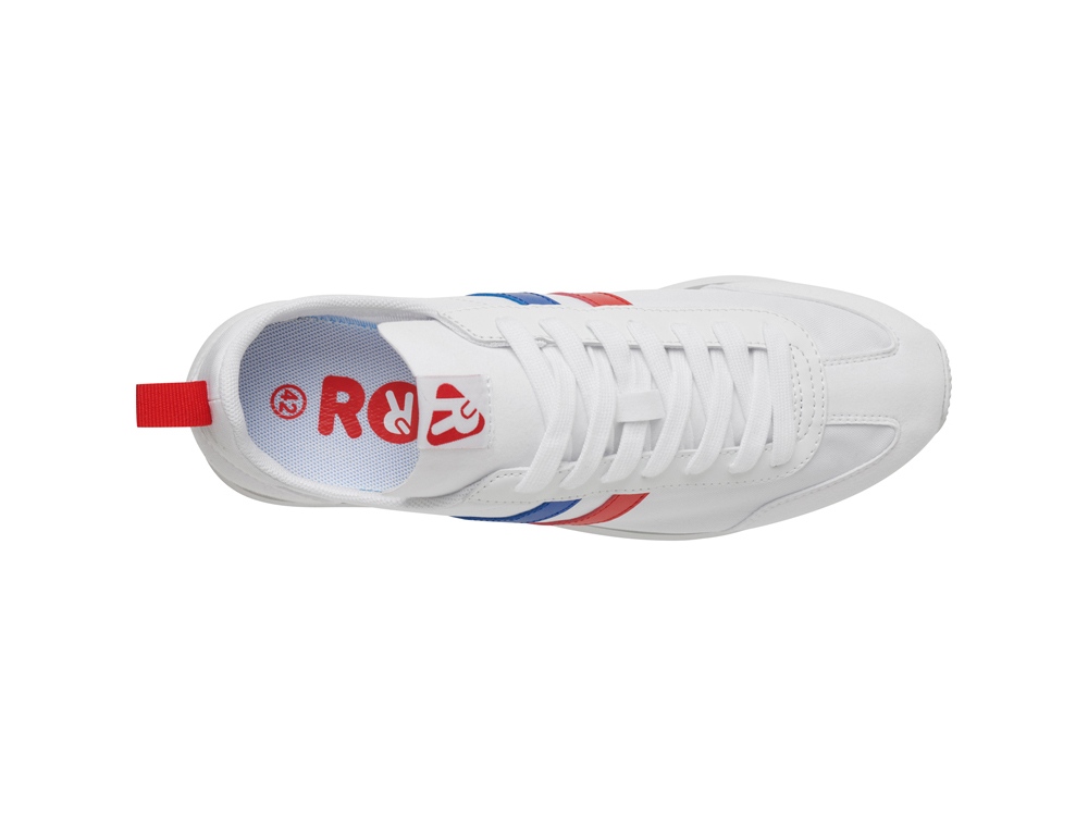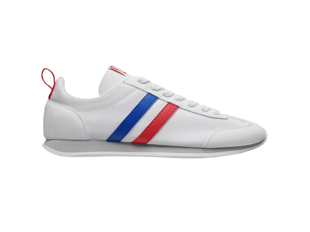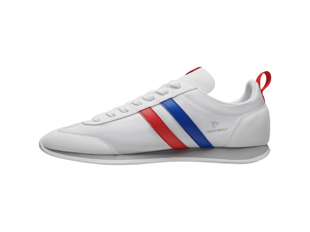 Повседневные кроссовки в стиле ретро с узким носком и резиновой подошвой. Фиксация на ноге с помощью шнурков, декоративные боковые полоски.