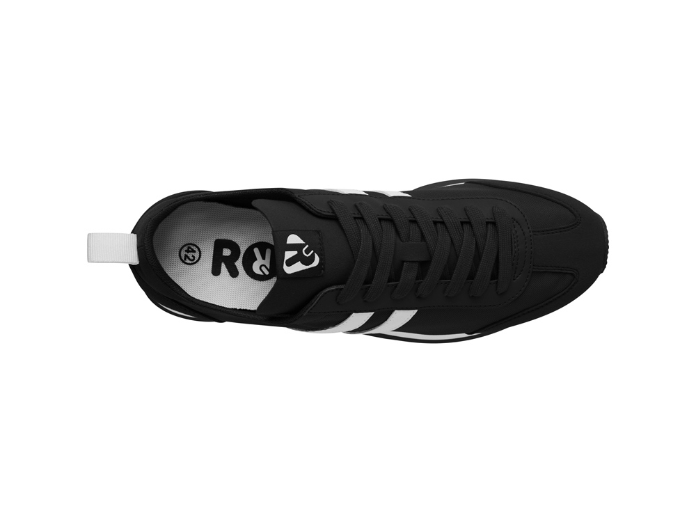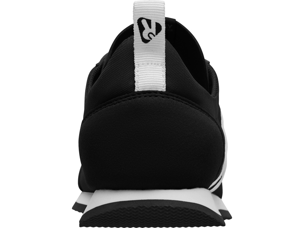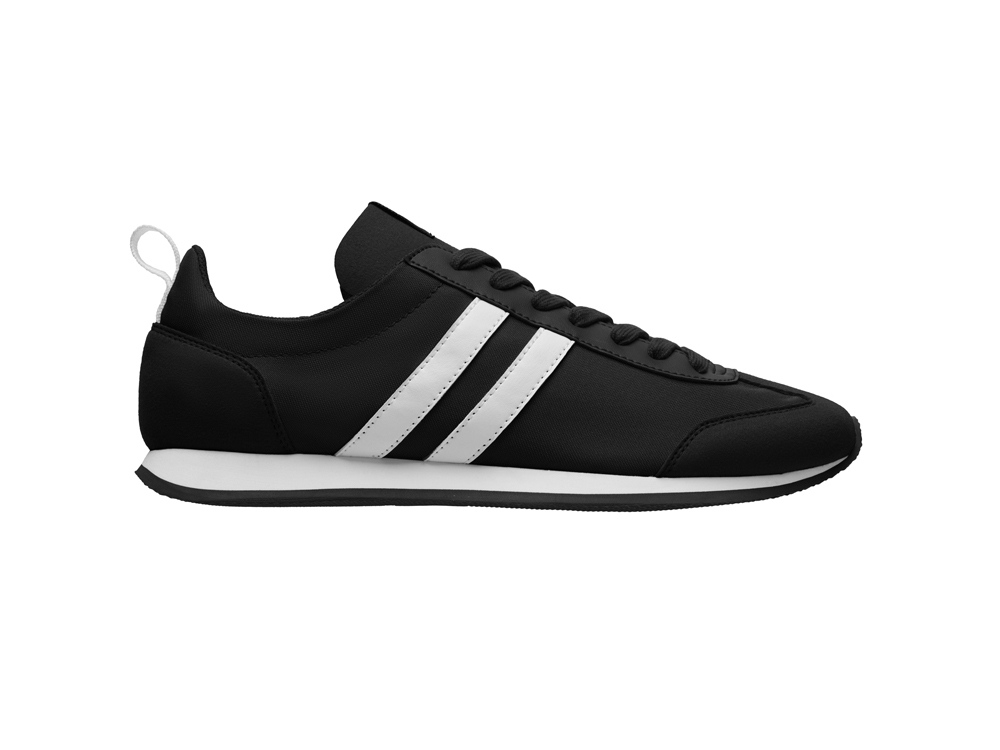 Повседневные кроссовки в стиле ретро с узким носком и резиновой подошвой. Фиксация на ноге с помощью шнурков, декоративные боковые полоски.