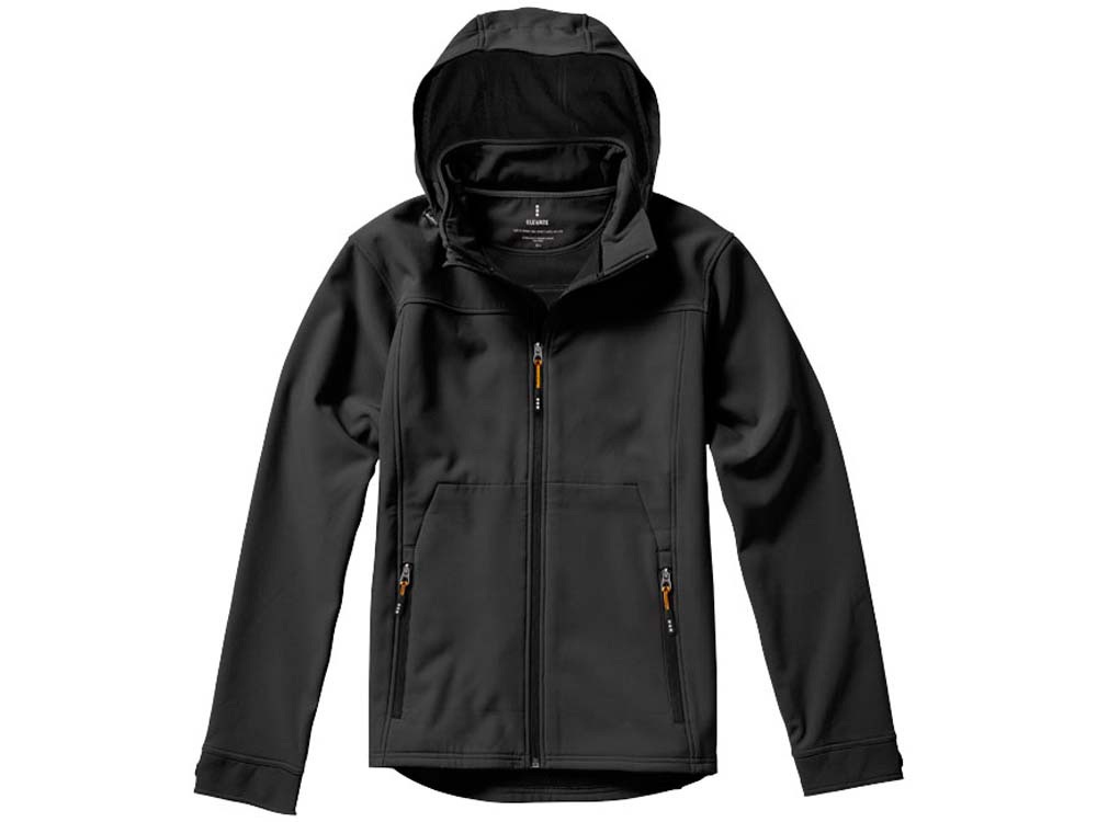 Куртка софтшел Langley. Стандартный покрой. Отстегивающийся капюшон на шнурках со стопперами. Обратная молния по центру и на карманах для рук. Регулируемые манжеты на липучках. Отражающий лого сзади. Водонепроницаемый 5000 мм. Дышащий 3000 мм. Ткань эластична в четырех направлениях. Ветронепроницаемая. Ремешки на собачку (второй комплект в цвете антрацит). Ткань из 90% полиэстера и 10% эластана, склеенного со 100% полиэстеровым микрофлисом. 300 г/м².
