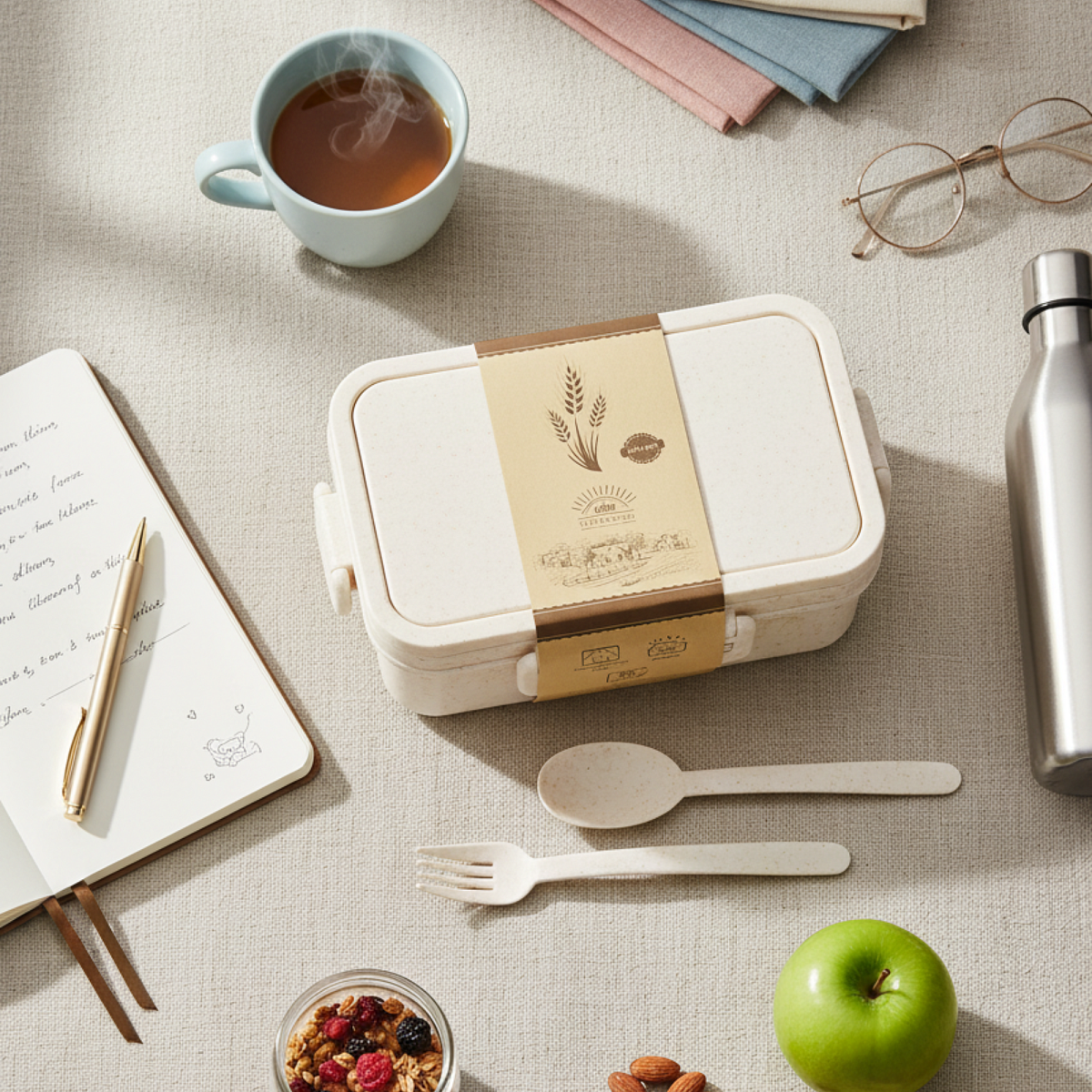 Товар изготовлен из следующих материалов: 50% пшеничное волокно, 50% пищевой пластик (матовая поверхность).