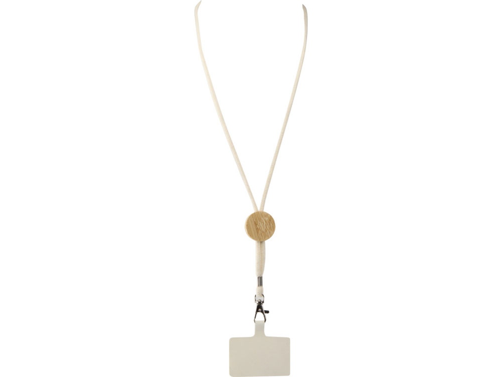 Носите свой телефон стильно с помощью шнурка для смартфона Адхаб. Центральная часть изготовлена из бамбука, полученного ответственным образом, что добавляет дизайну природный акцент. Этот элемент не только улучшает внешний вид, но и является идеальной площадкой для брендинга. Этот практичный и стильный шнурок идеально подходит для повседневного использования или мероприятий.
